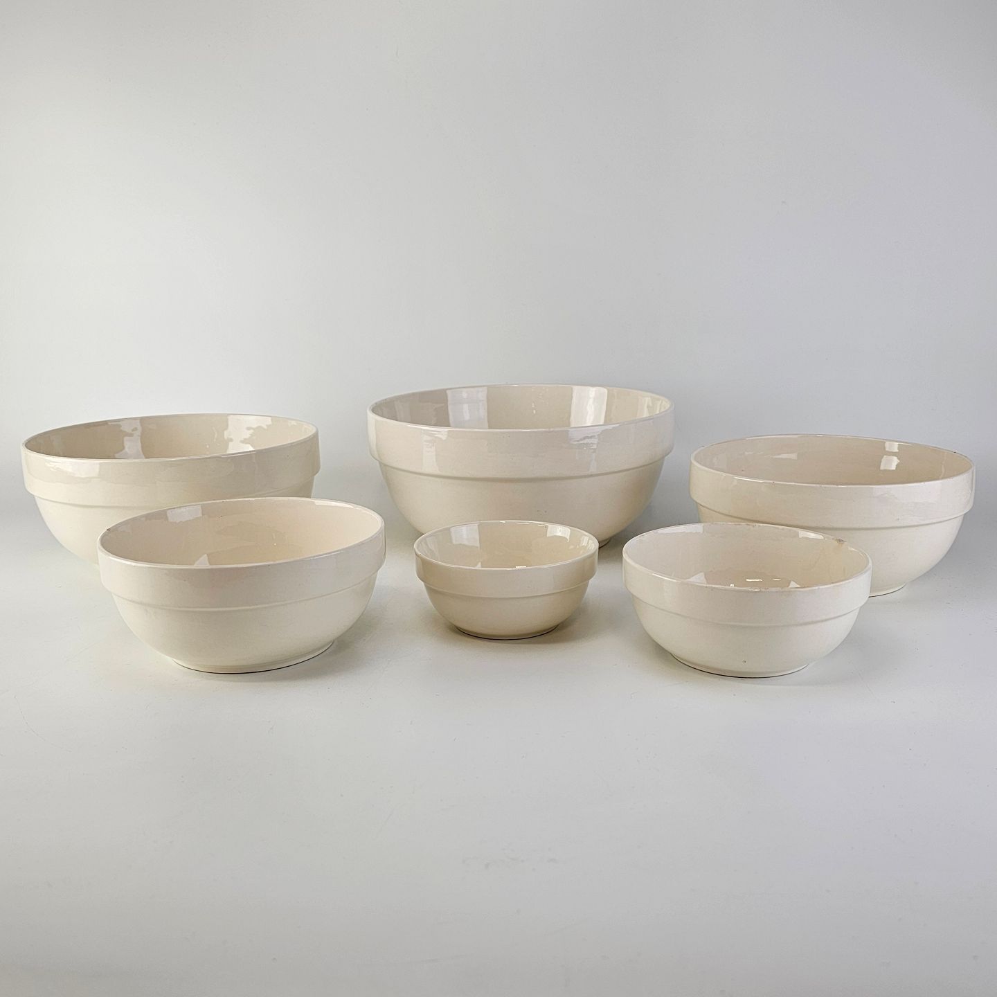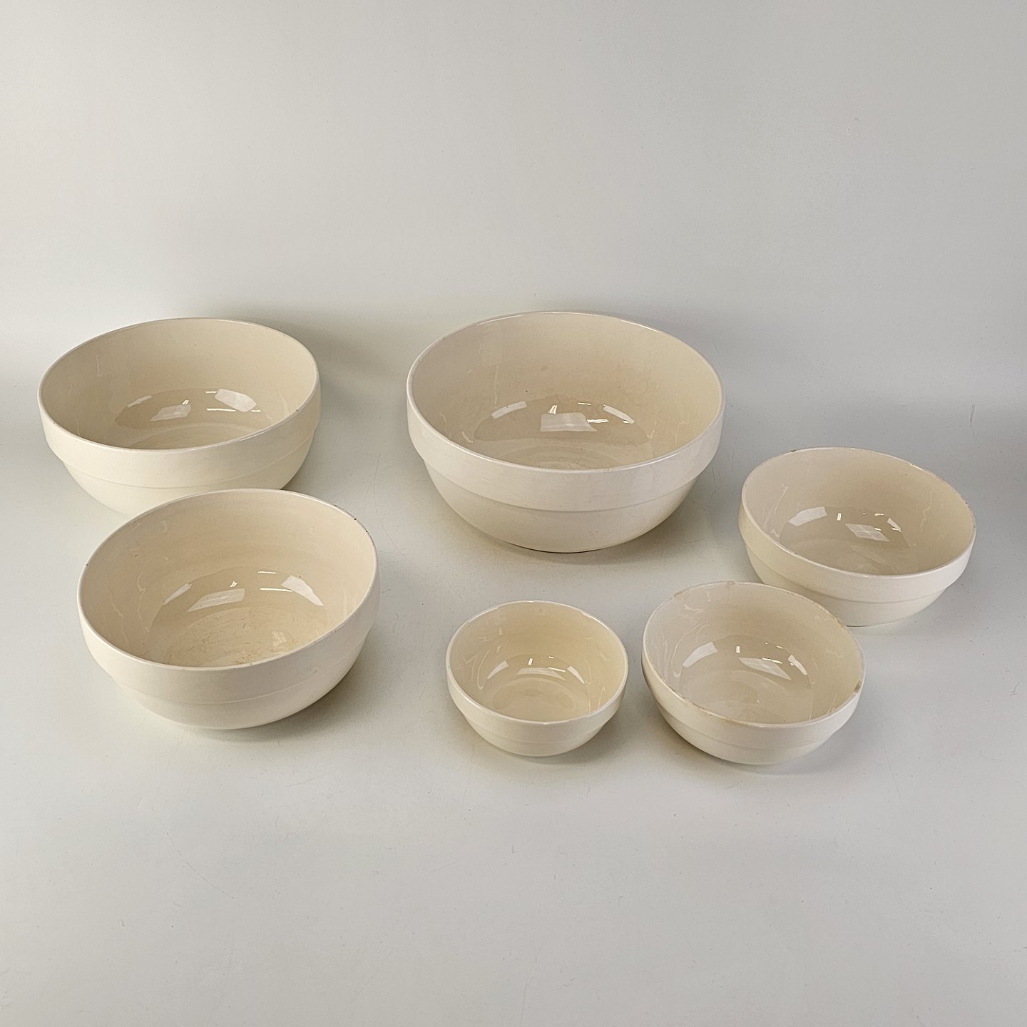 Sæt med seks skåle i cremefarvet fajance fra stellet AlmaProducent Aluminia