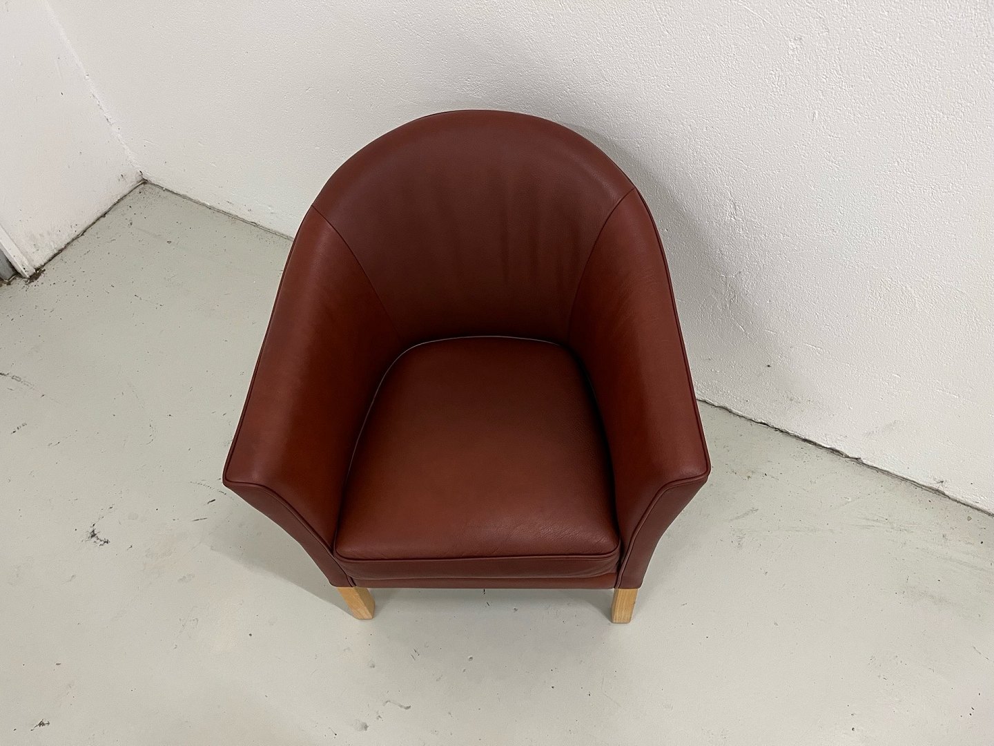 Architect designed Mogens Hansen MH 80 Armchair with Gefion leather cognac and with beech legs. New price 18,989,-The chair is in really nice condition and used sparingly, cleaned and leather treated. 2 pieces in stock, inquire for more details. Beautiful and elegant armchair from Mogens Hansen. The armchair not only has a beautiful design, but also a really good seating comfort. Here you can enjoy high-class comfort for hours while you sit and relax after a long day or read a good book. With its stylish design, the armchair will be a timeless addition to any interior.Design: Mogens HansenMaterial: Legs: BeechLeather: Gefion leather cognac.Dimensions: Full height: 85 cmSeat height: 45 cmWidth: 75 cmDepth: 72 cmOur concept.Purchase of newer/used furniture.Thorough cleaning and treatment.Viewing by appointment.Free delivery throughout Denmark to the curb.See also our other designer furniture from, among others, Poul Kjørholm, Erik Jørgensen, Mogens Hansen, Søren Lund, Arne Jacobsen, Jørgen Gammelgaard, Nielaus, Skalma, Fritz Hansen, Bruno Mathsson, Cph, Skovby, Boconcept, and many others on our website Mrretrodesign.dk Dealer