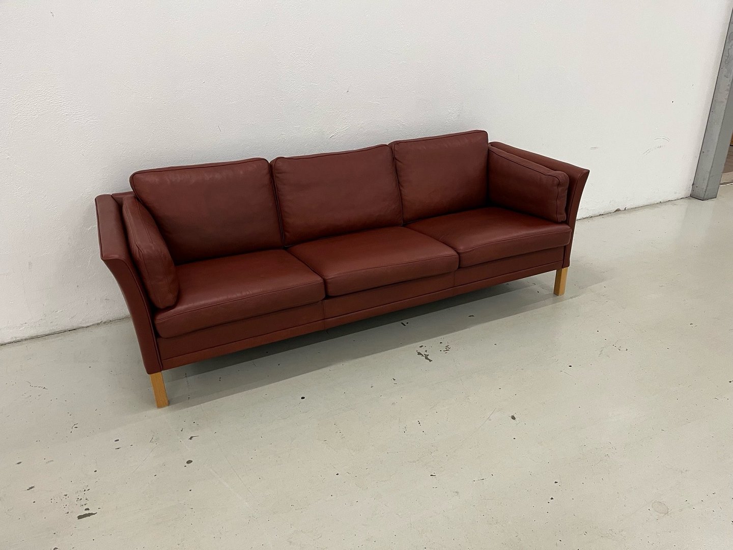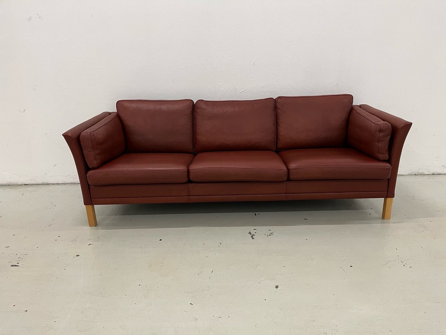 Architect designed Mogens Hansen MH2225 3-seater sofa in Gefion leather cognac and legs 40-40 in beech. New price. 42,339,- The sofa has had 1 owner and has been used minimally and is in really great condition. The sofa is in super great condition and has been used sparingly. MH 2225, launched in 1971, is still one of Mogens Hansen's most popular London sofas. The slightly curved arm, simple and clean lines and the relatively small seat depth offer a unique seating comfort, which means that the model still has its obvious justification in Mogens Hansen's range today. Beautiful and classic sofa from Mogens Hansen. Fitted with down top seat inserts and back cushions with poly down which provide just the right comfort and the right look. Here you can enjoy sitting and reading all morning with a good cup of coffee. The look is, as Mogens Hansen always delivers, stylish, simple and minimalist with an elegance that will suit most living rooms. Designer: Mogens Hansen Measurements: Length 218 cm Width 80 cm Height 78 cm Seat depth 51 cm Seat height 45 cm Our concept Purchase of newer/used furniture Thorough cleaning and treatment Viewing by appointment Free delivery throughout Denmark to the curb See also our other designer furniture including Mogens Hansen Søren Lund Jørgen Gammelgaard Bruno Mattsson Nielaus Arne Jacobsen Fritz Hansen Stouby Erik Jørgensen Skalma Boconcept Bolia Ryesberg Skovby CPH and many others.