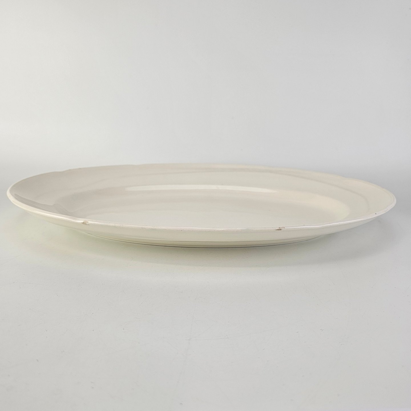 Mellem størrelse ovalt fad i cremefarvet fajance fra stellet AlmaProducent Aluminia