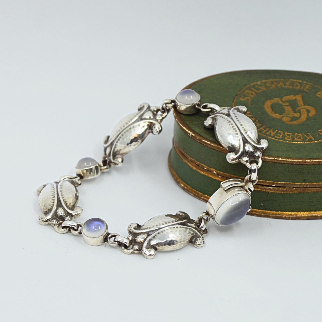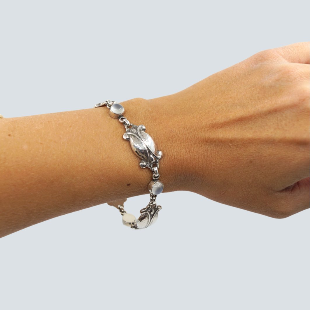 Georg Jensen silver jewellery.Georg Jensen; A "Moonlight Blossom" bracelet, made of sterling silver, set with moonstone. L. 19 cm. W. 1,4 cm.