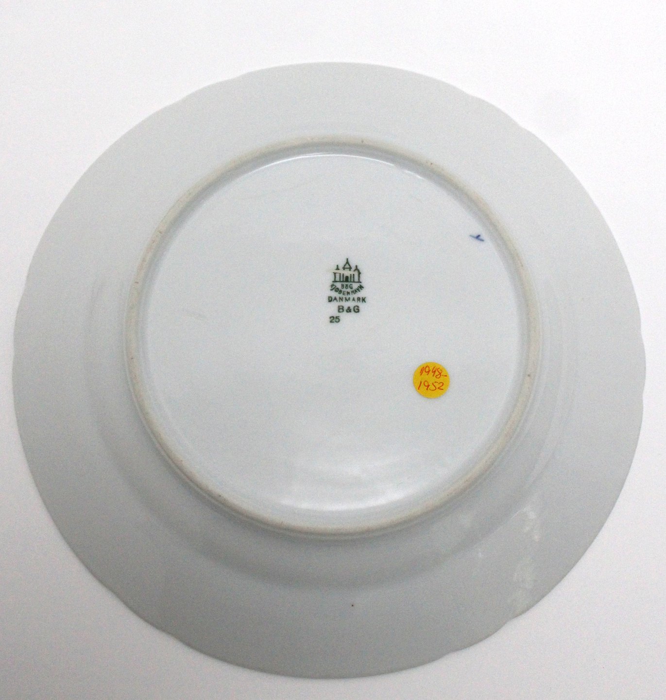 Produceret i perioden 1948-1952. Nr.25. Diameter 24 cm. II. sortering. Pris: 300 kr. stk. Lager: 1