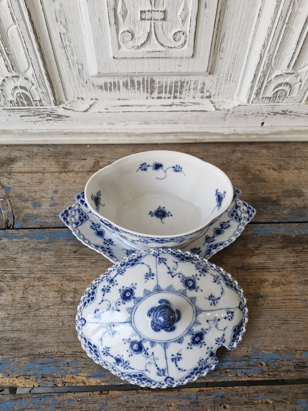 Royal Copenhagen Blue Fluted full lace sauce bowl with lid