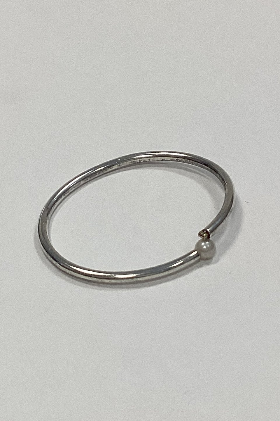 Frits Heiring Sørensen Sterling Silver Armring with Pearl and StoneInner Width: 69 mm / 2.72 inch