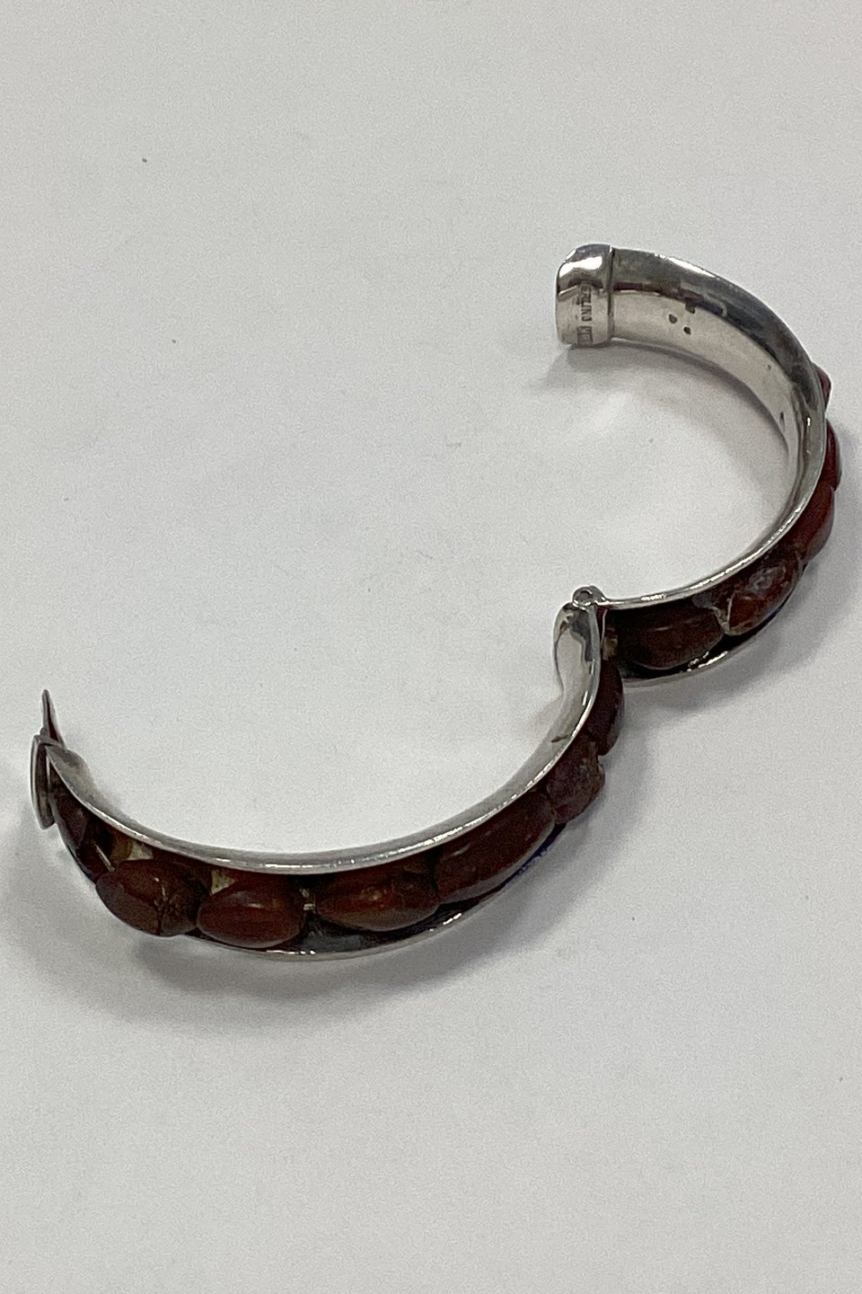 Bracelet in Sterling Silver decorated with pieces of amber, by Niels Østergaard KnudsenInner width: 56 mm / 2.20 inch