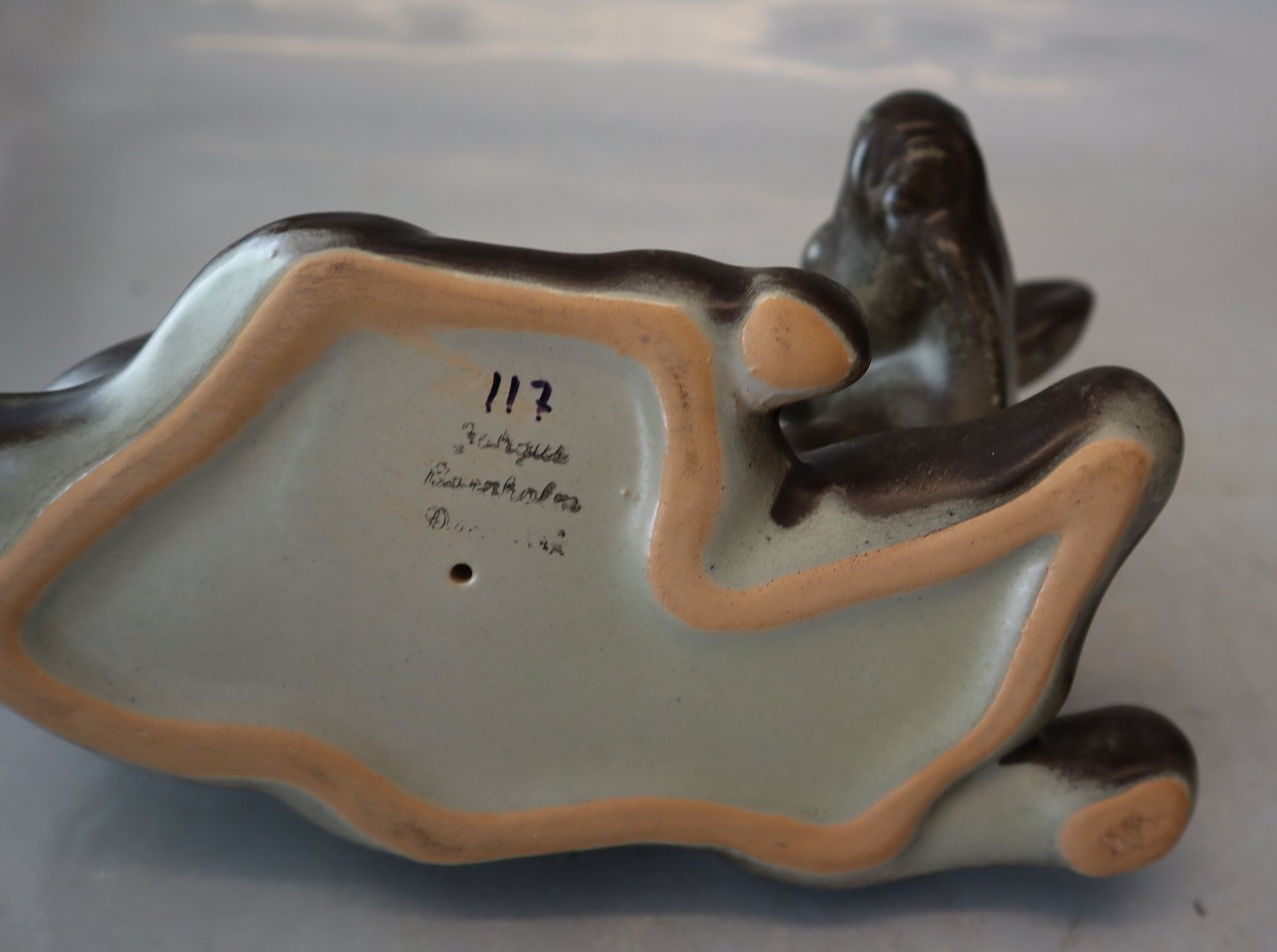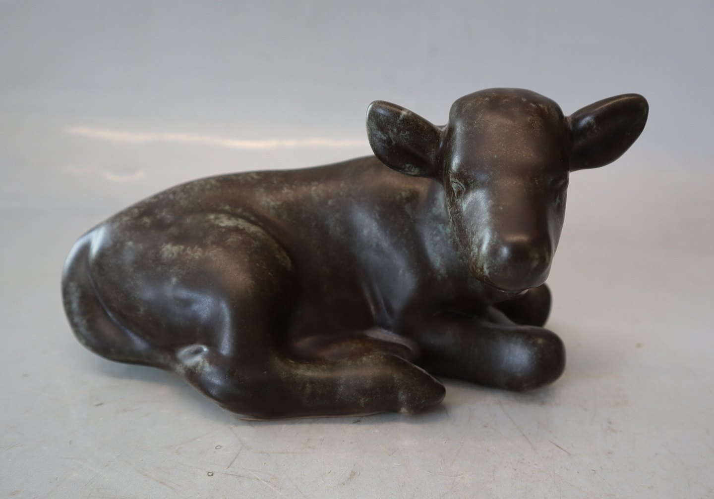 117 Green Glazed Calf 11.5 x 20 cm JohGus, Bornholm CeramicRoenne. Bornholm