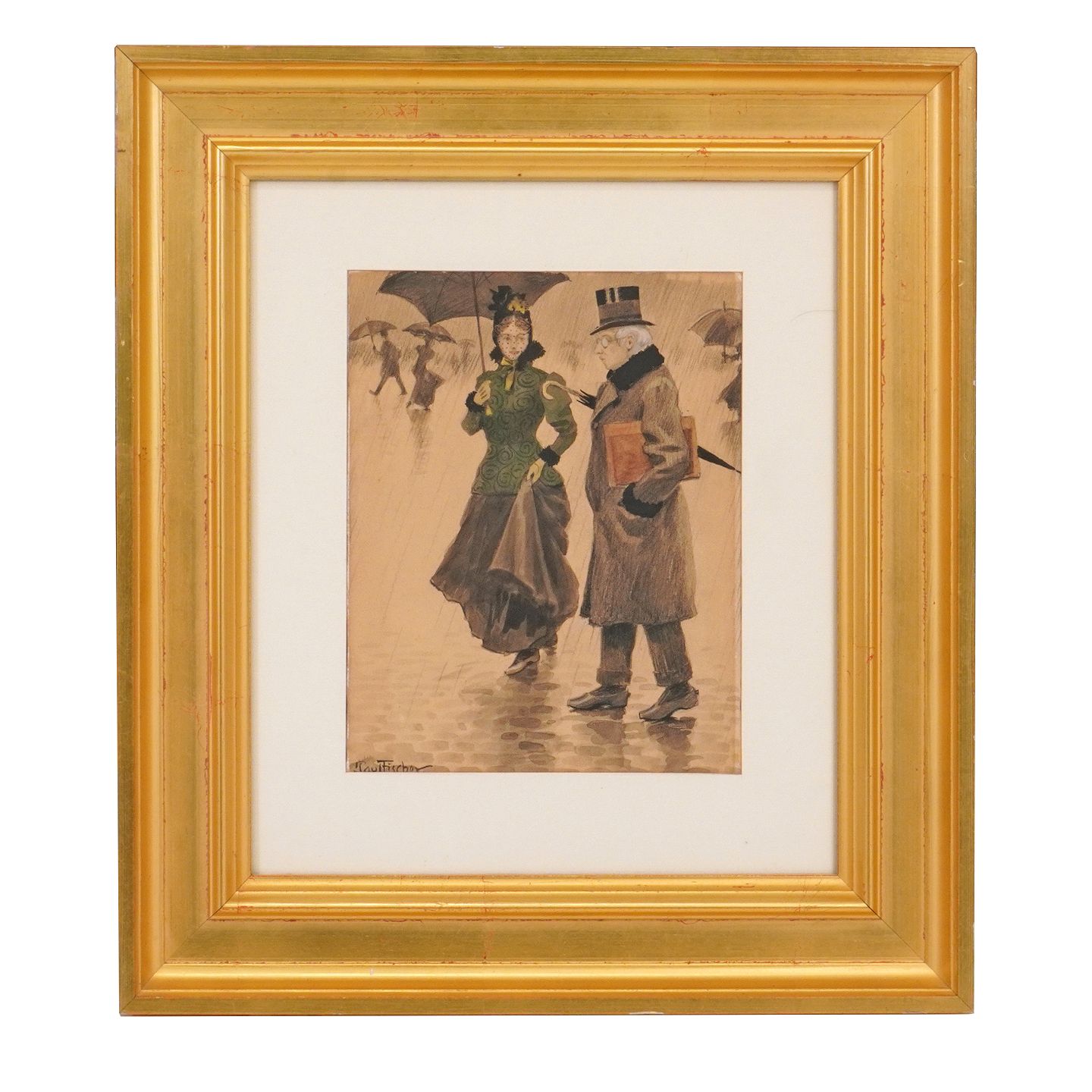 Paul Fischer akvarelPaul Fischer, 1860-1934, Tusch og vandfarve
