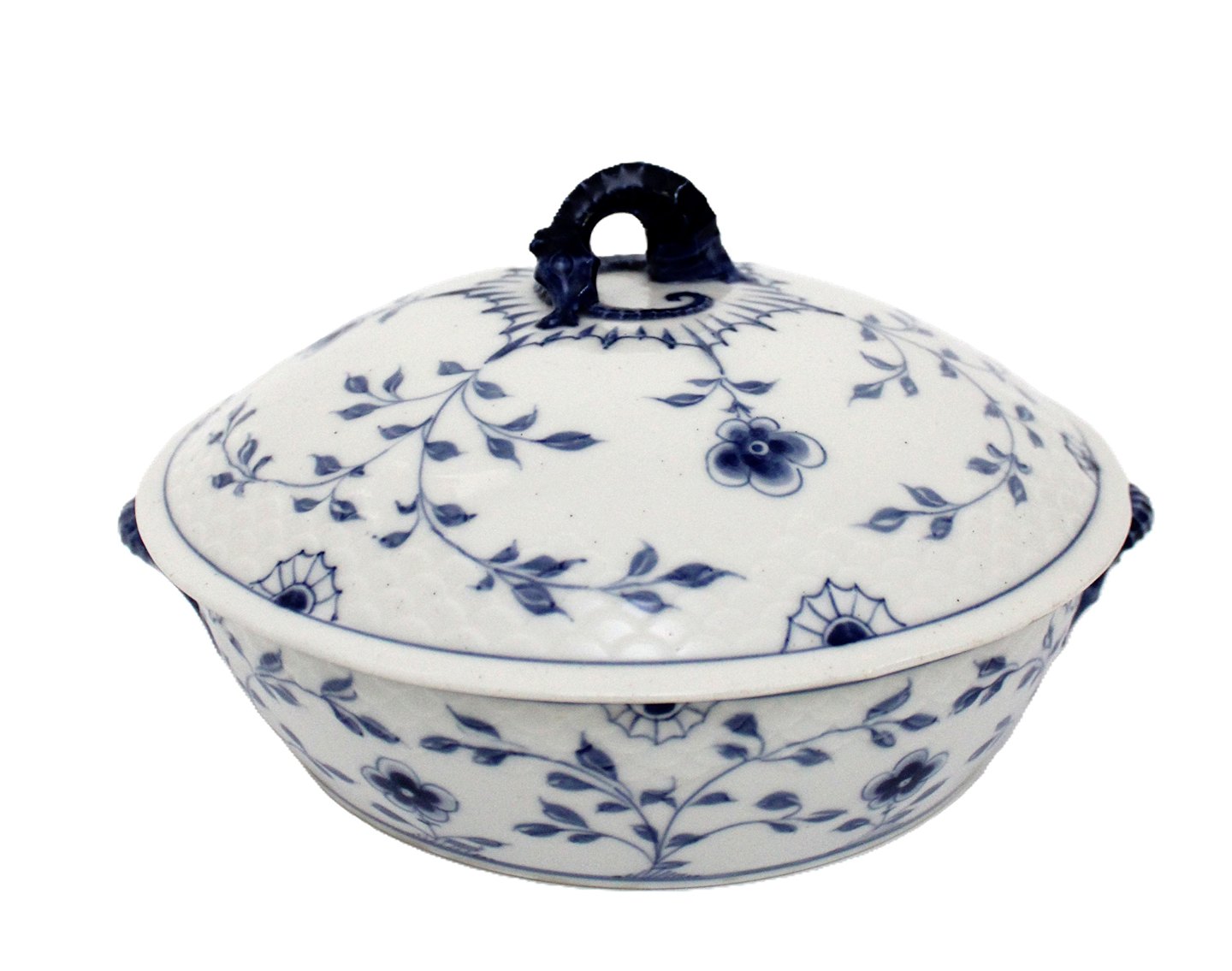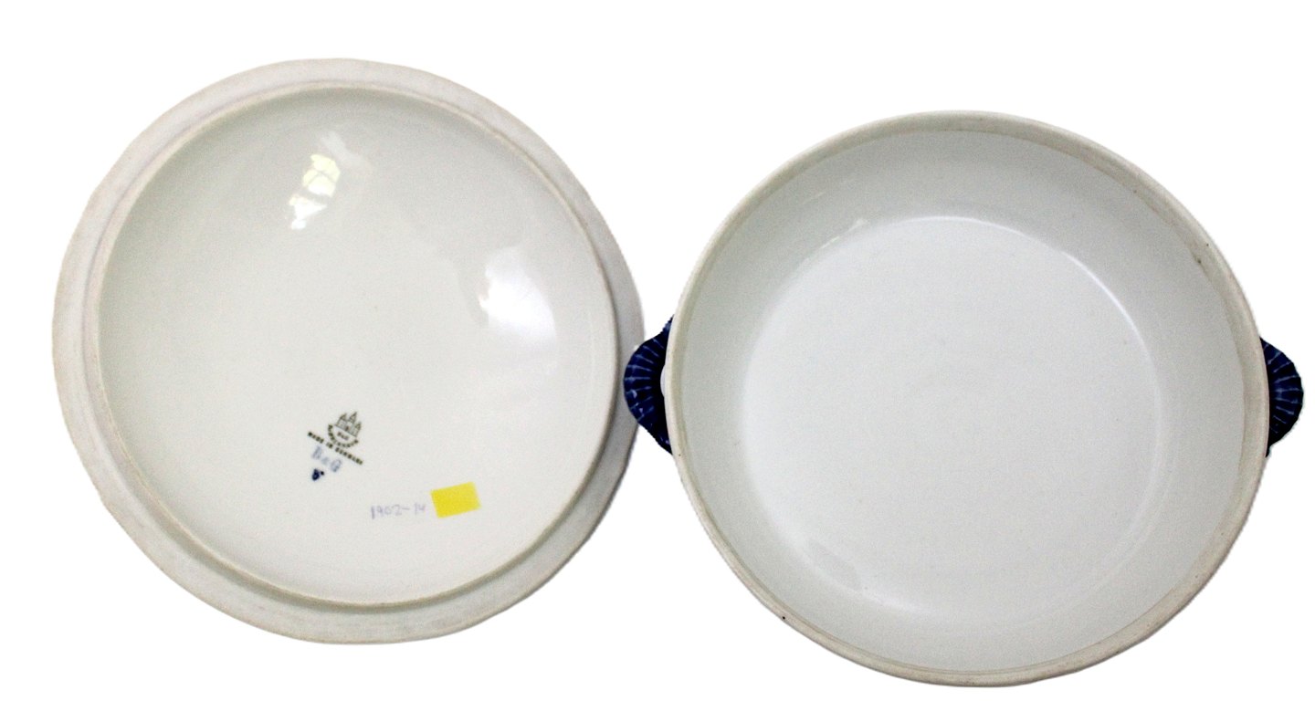 Bing & Grøndahl, Sommerfugl, Lågfad, terrin. Kartoffelskål med låg. Gratinskål med låg. Produceret i perioden 1902-1914. Med den tids småprikker i glasuren. I. sortering. Fin stand.Højde med låg 12 cm. Længde med ører 23 cm. Pris: 1500 kr. stk. Lager: 1