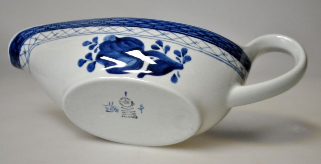 Royal Copenhagen, Trankebar, buttercup, faience, no. 2591, 20th century. Copenhagen, Denmark. Stamped. L. 17.5 cm. H.: 8 cm.1.Quality. Currently 2 pieces in stock.