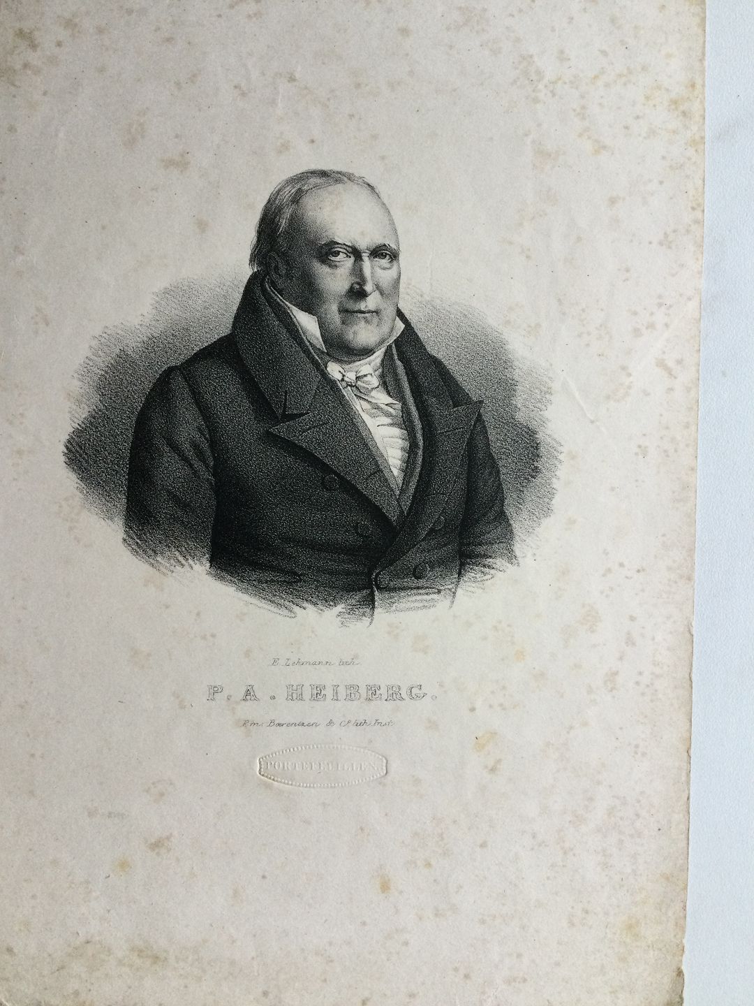 Litografi af Edvard Lehmann - Portræt af forfatter og filolog P.A. Heiberg