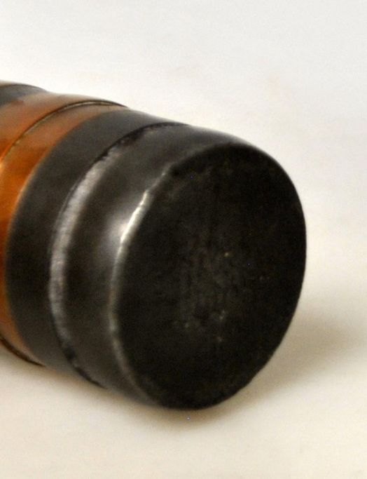 Cigar cutter, circa 1900. Cigar cutter made of granate. Iron, brass and copper. Stamped on the bottom: J 4. H.: 11 cm.Item number: 28072