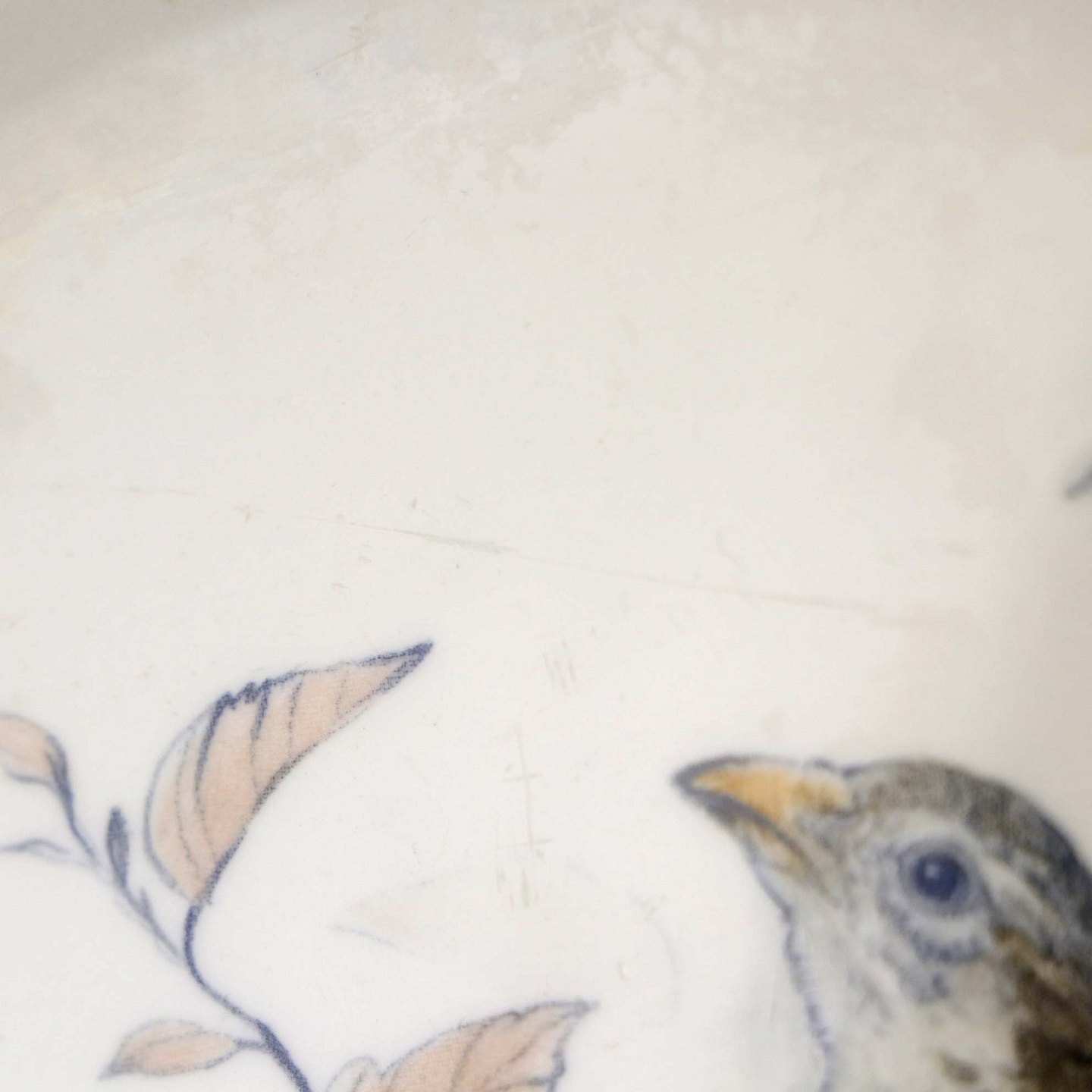 Fremstår med med mindre brugsspor på topkanten og yderside samt overfladiske ridser i fadets bund.