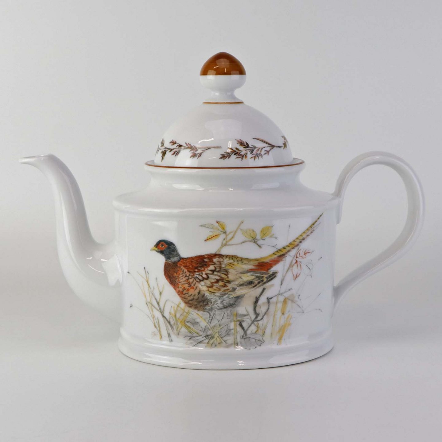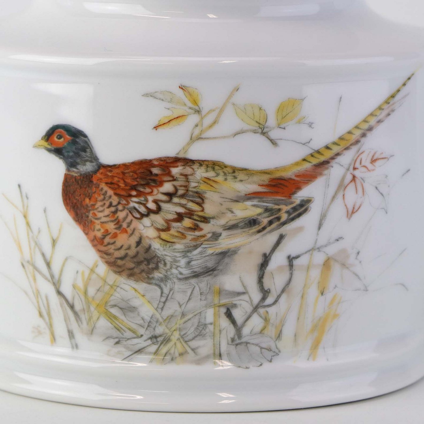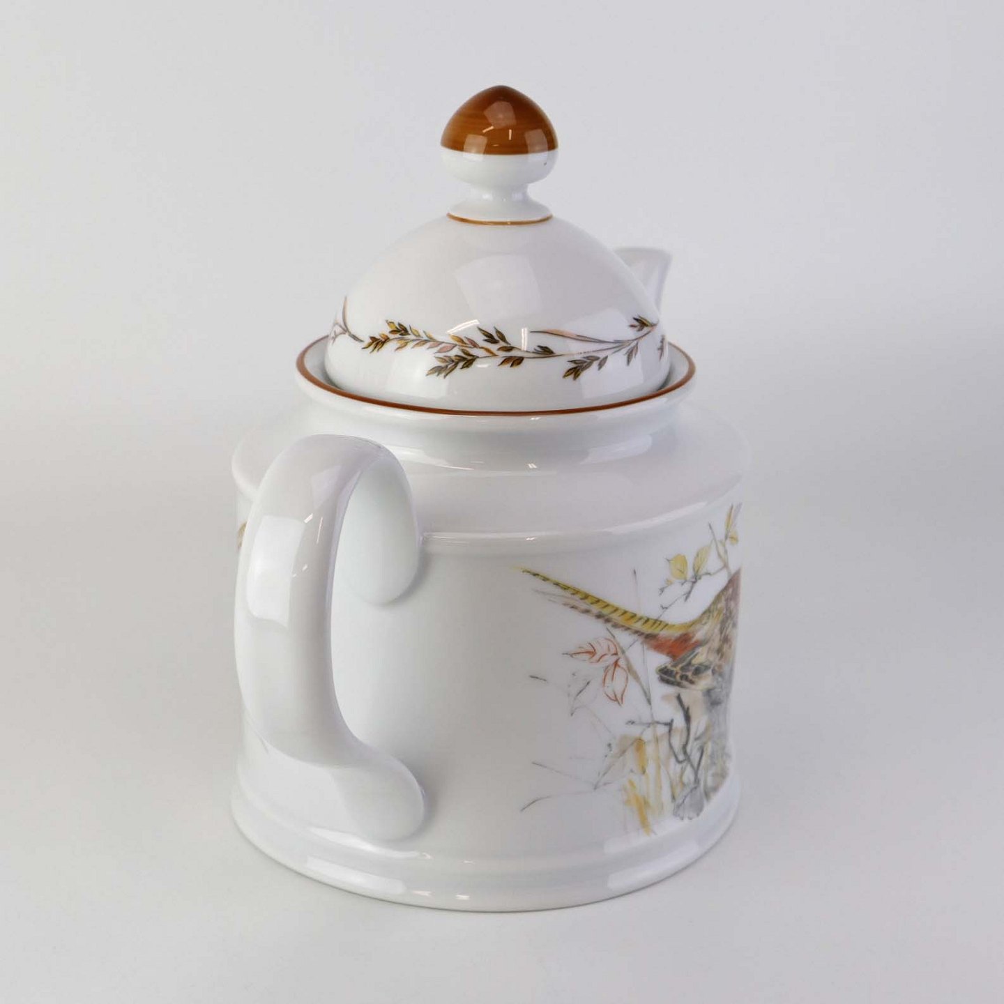 Tekande i porcelæn med motiv af fasan fra stellet Jagtstel. Model RenateFormgiver Mads Stage