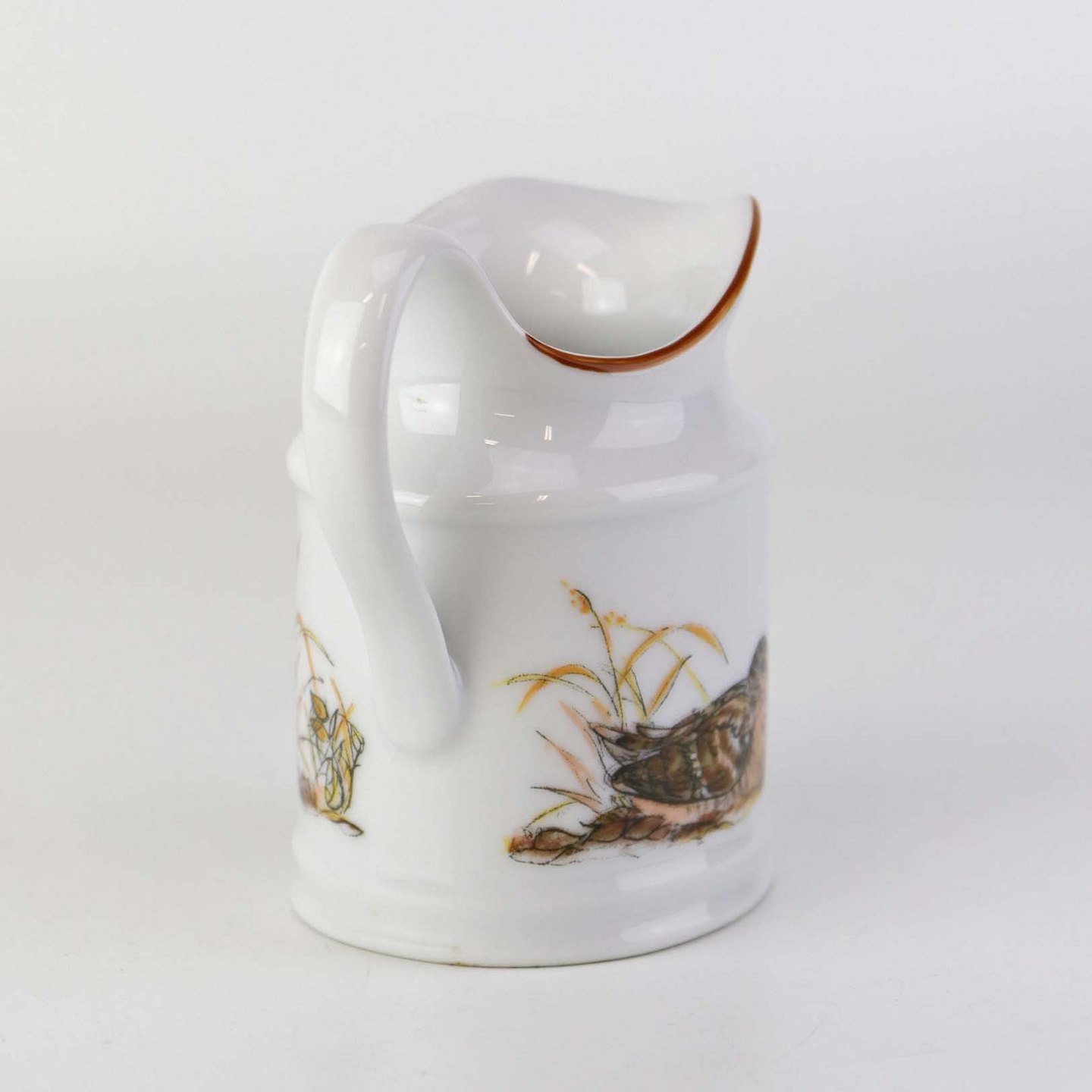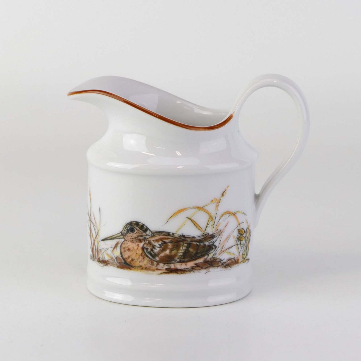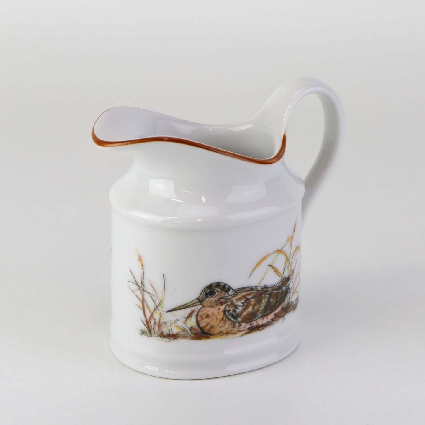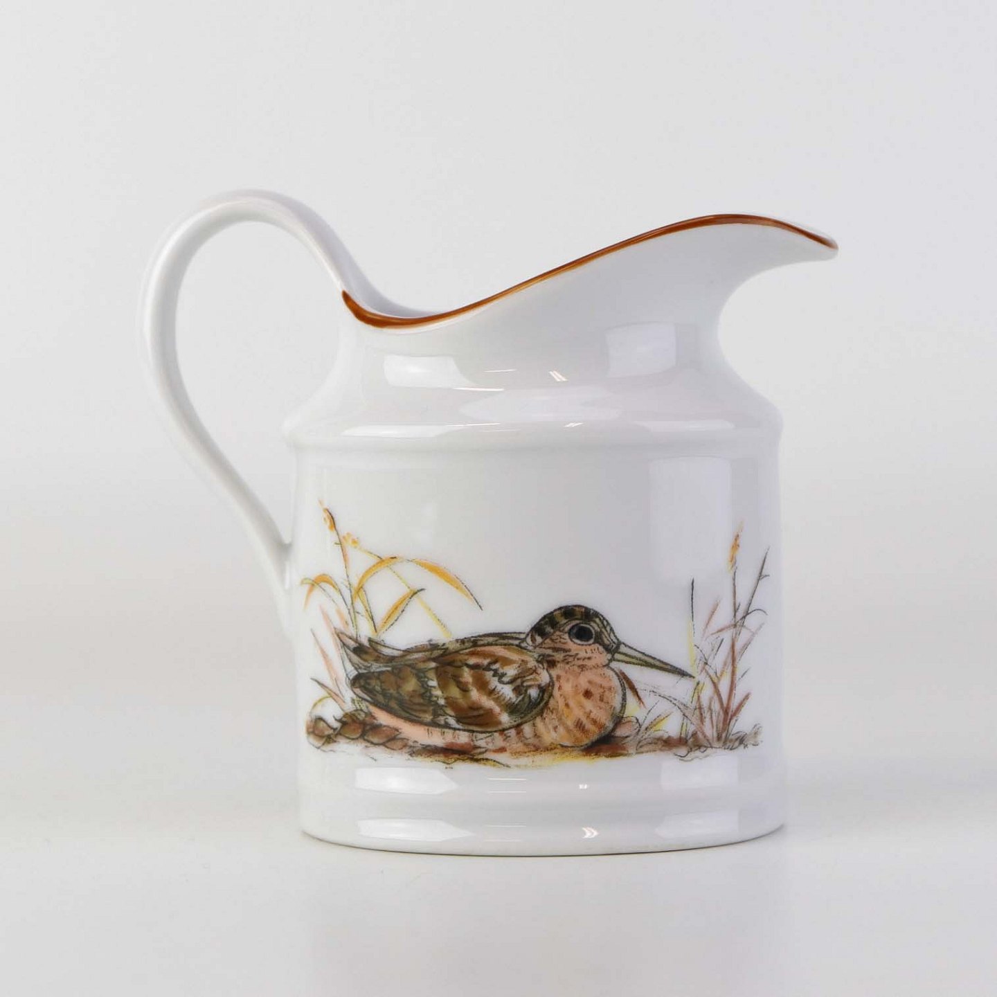 Kande til fløde i porcelæn med motiv af en sneppe fra stellet Jagtstel.Formgiver Mads Stage