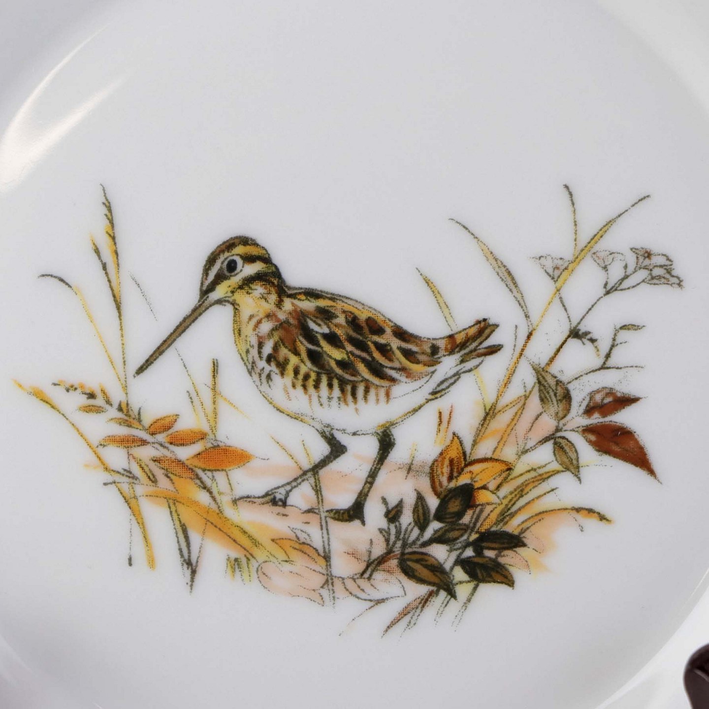 Rund asiet i porcelæn med motiv af en sneppe fra stellet Jagtstel.Formgiver Mads Stage