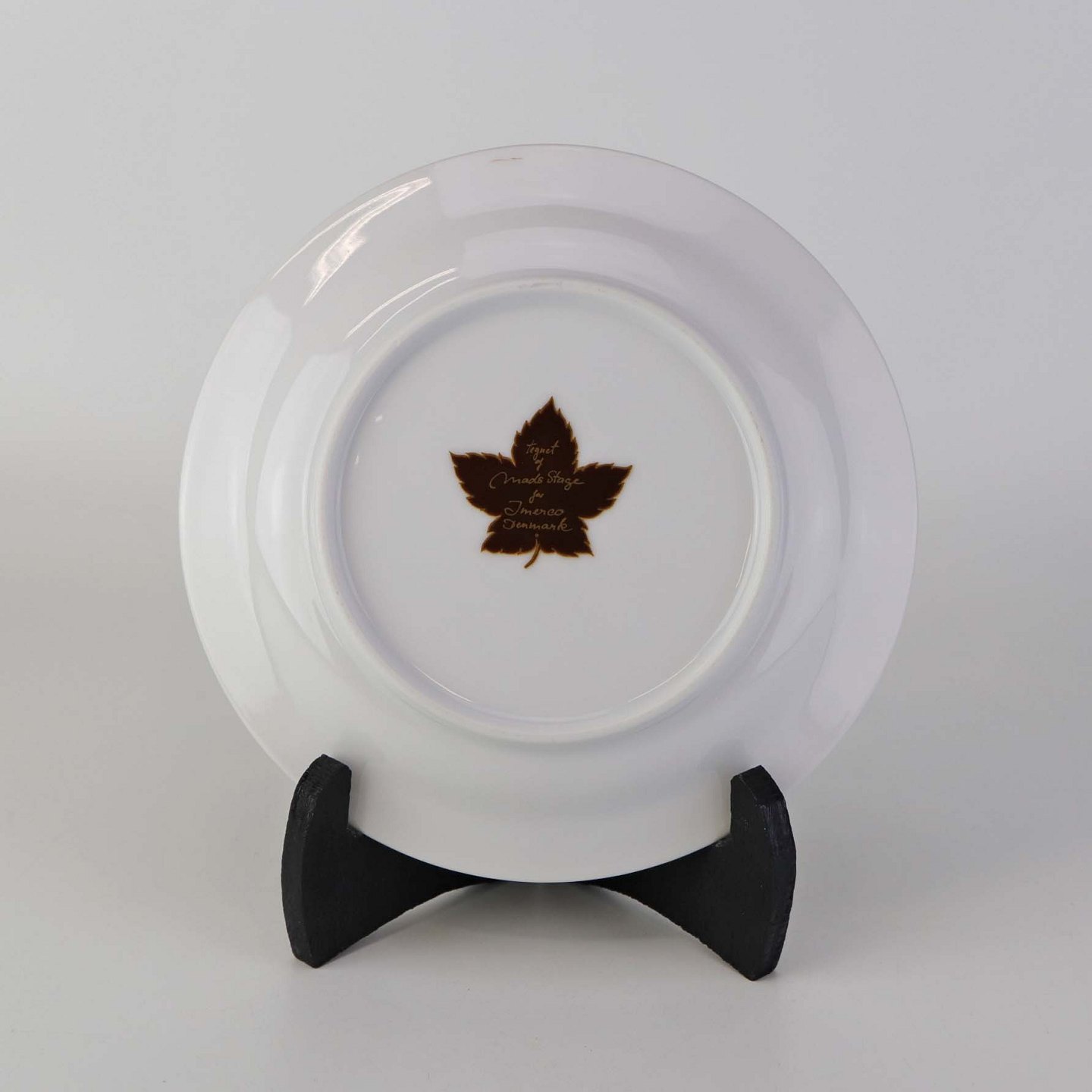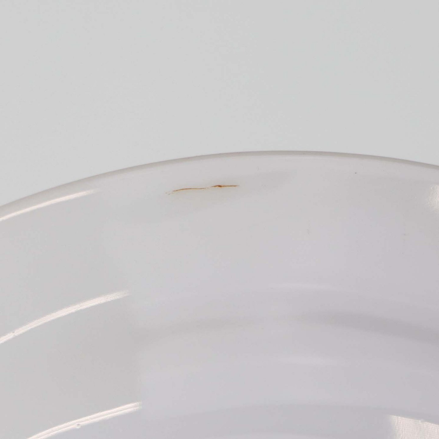 Fremstår med med et mindre mørk streg under glasuren på bagsiden.