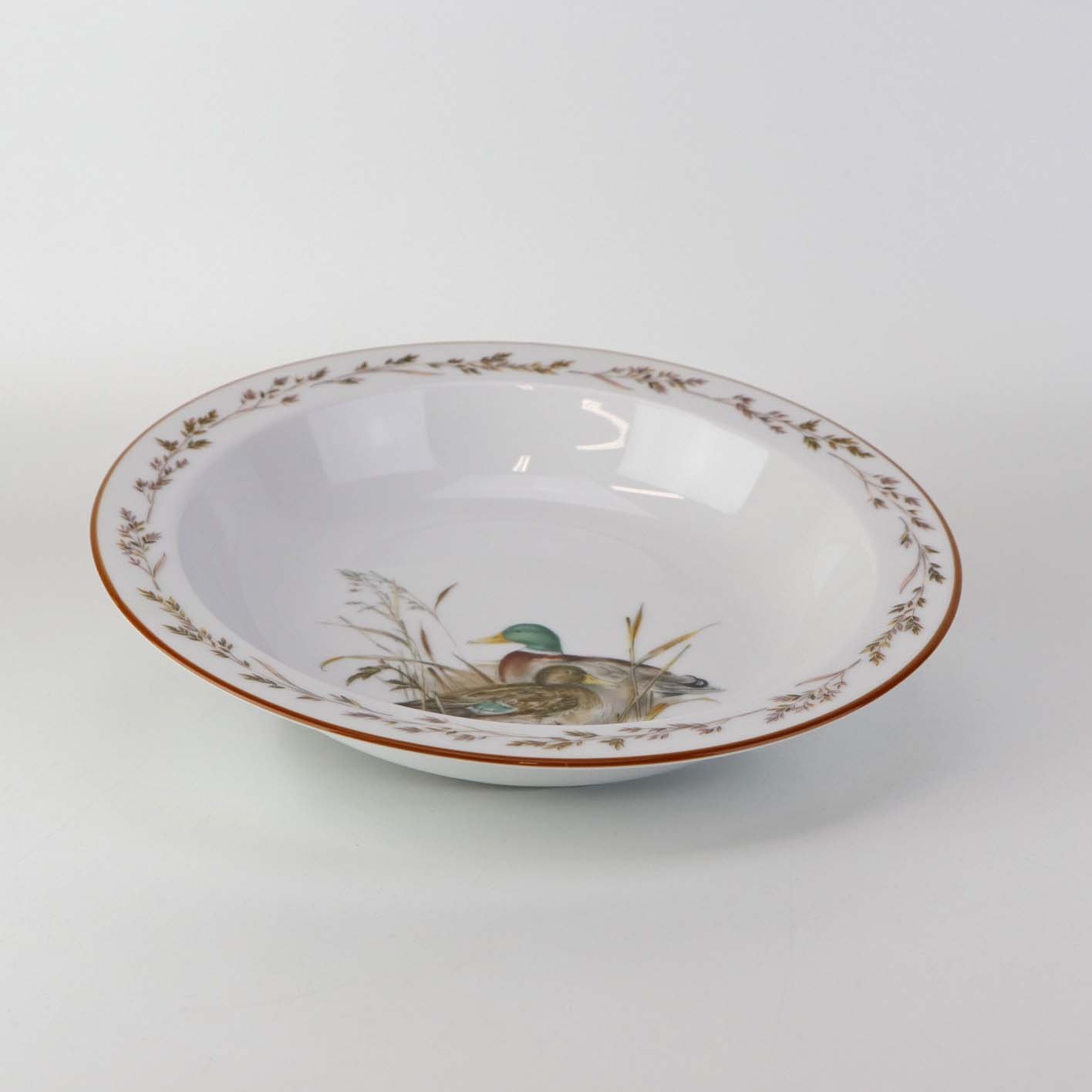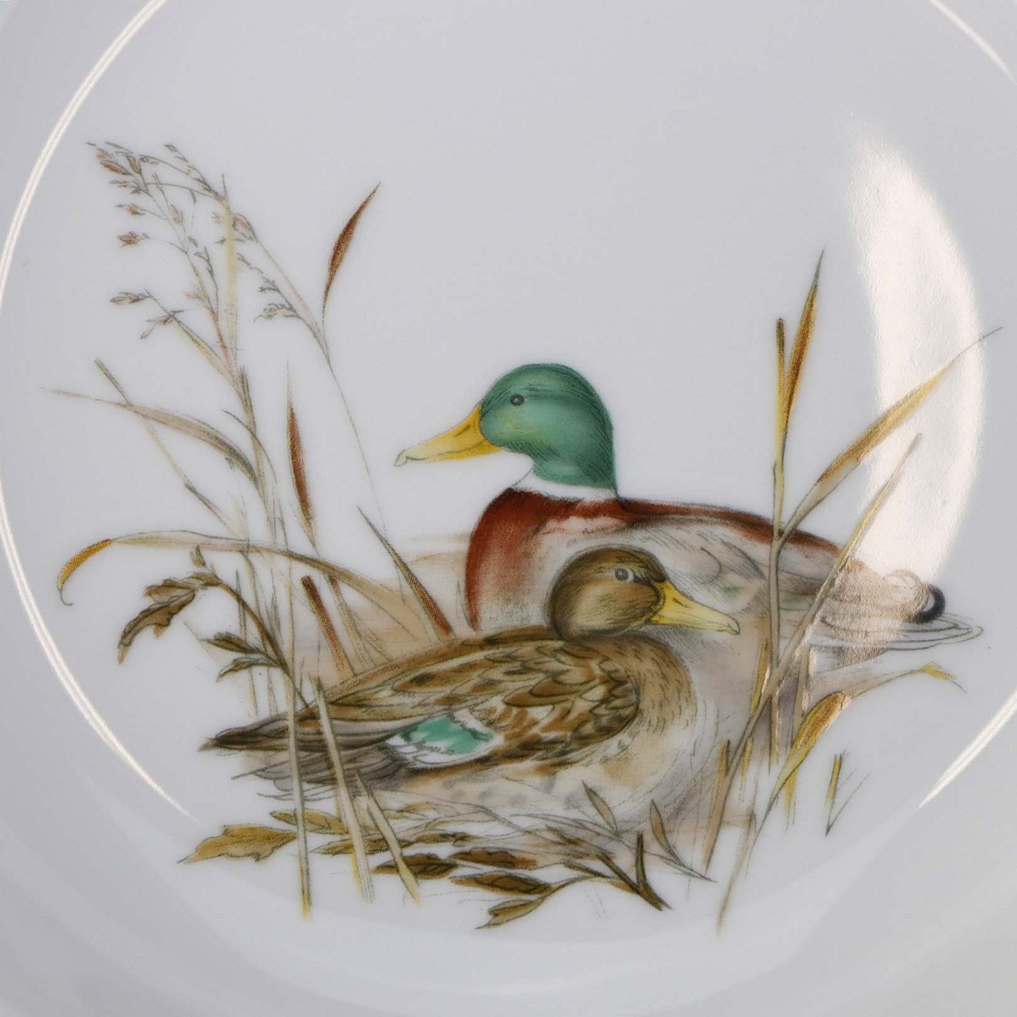 Dyb tallerken i porcelæn med motiv af ænder fra stellet Jagtstel.Formgiver Mads Stage