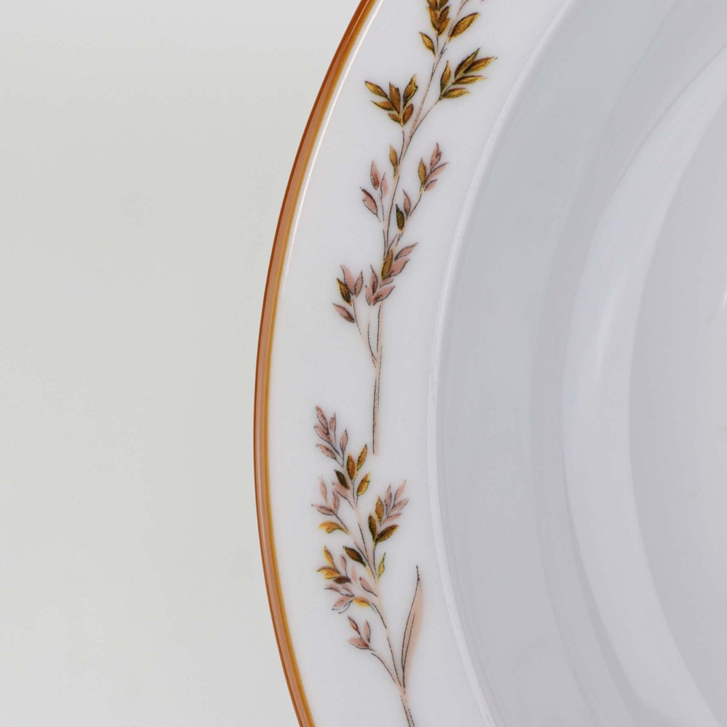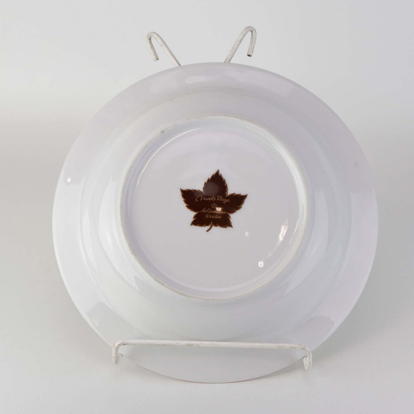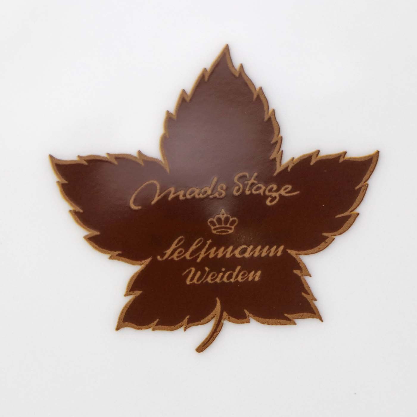 Jagtstellet er i glat hvidt porcelæn med gyldenbrun kantdekoration og motiver af forskellige vilde danske dyr i deres naturlige miljø. Stellet er holdt i dæmpede varme efterårsfarver.