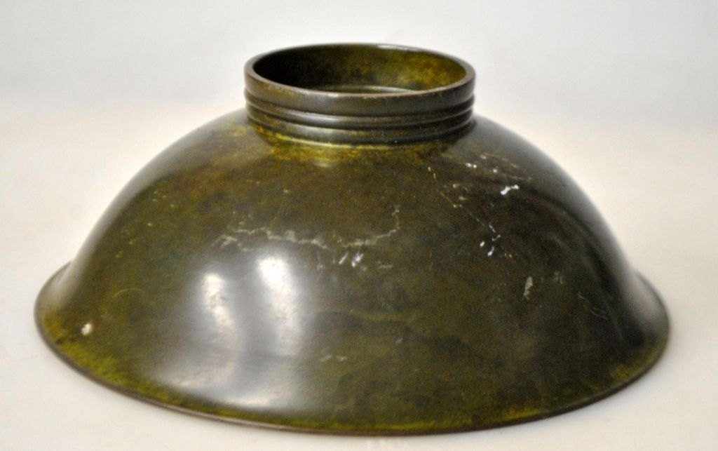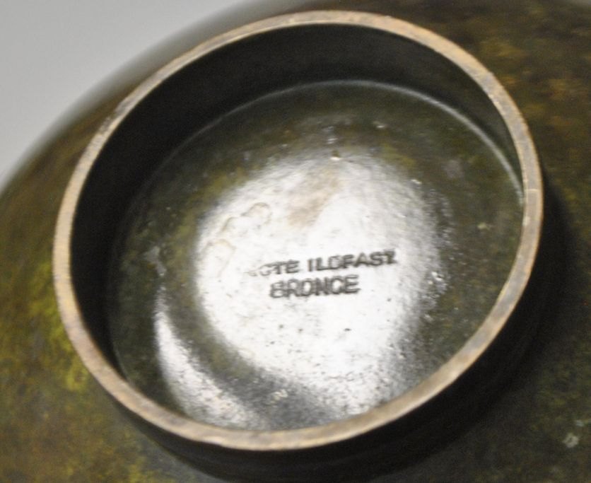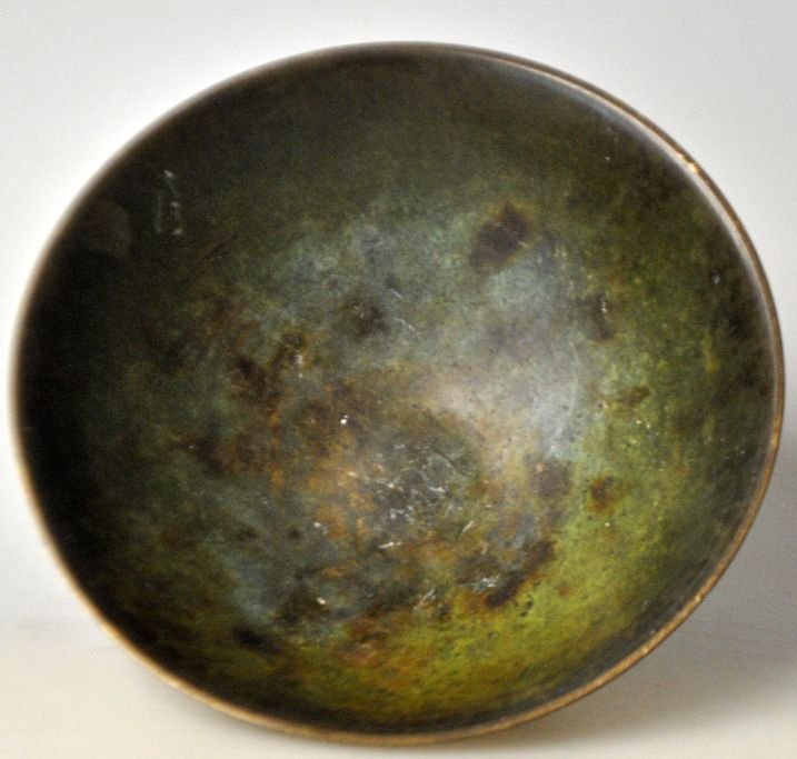 Small Danish patinated bronze bowl, art deco, approx. 1930. On a small stand rim. Stamped: Genuine refractory Bronze. H.: 5 cm. Dia.: 12.5 cm.Item number: 28195