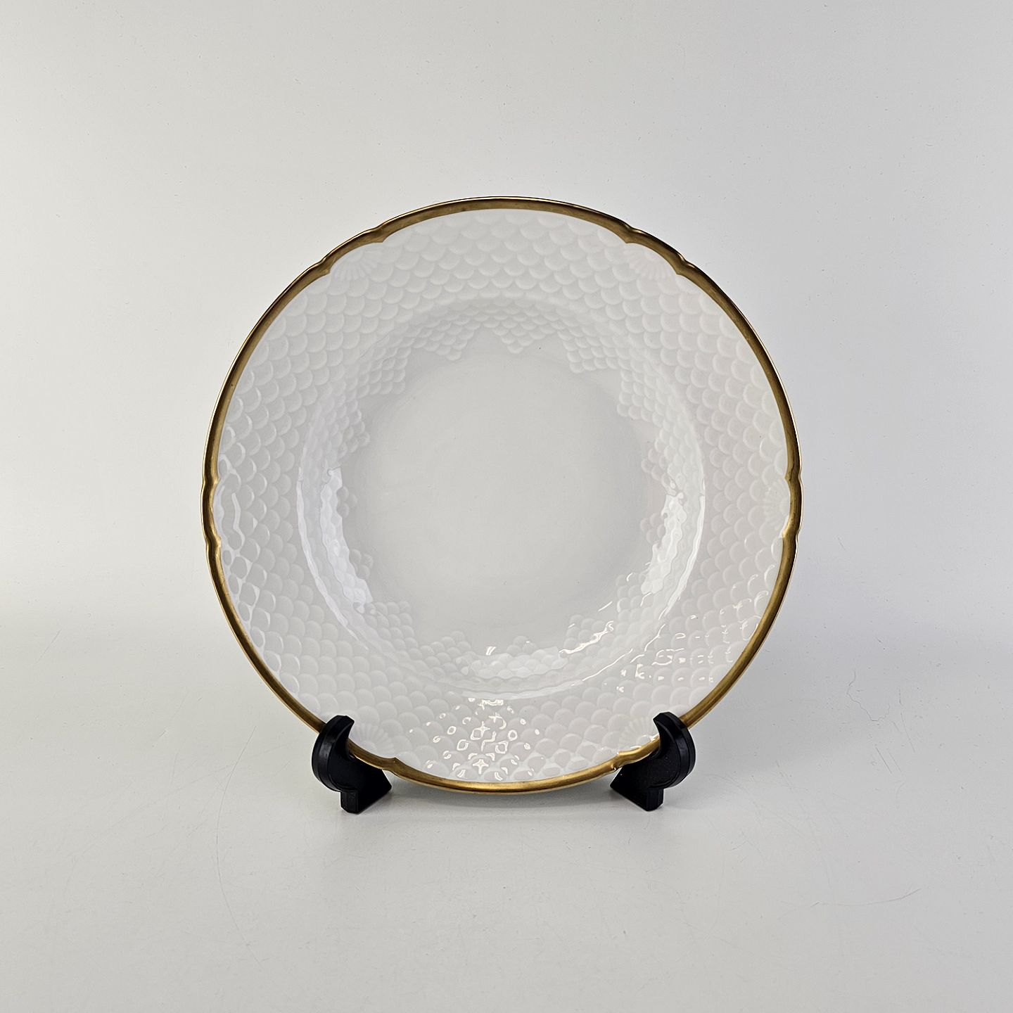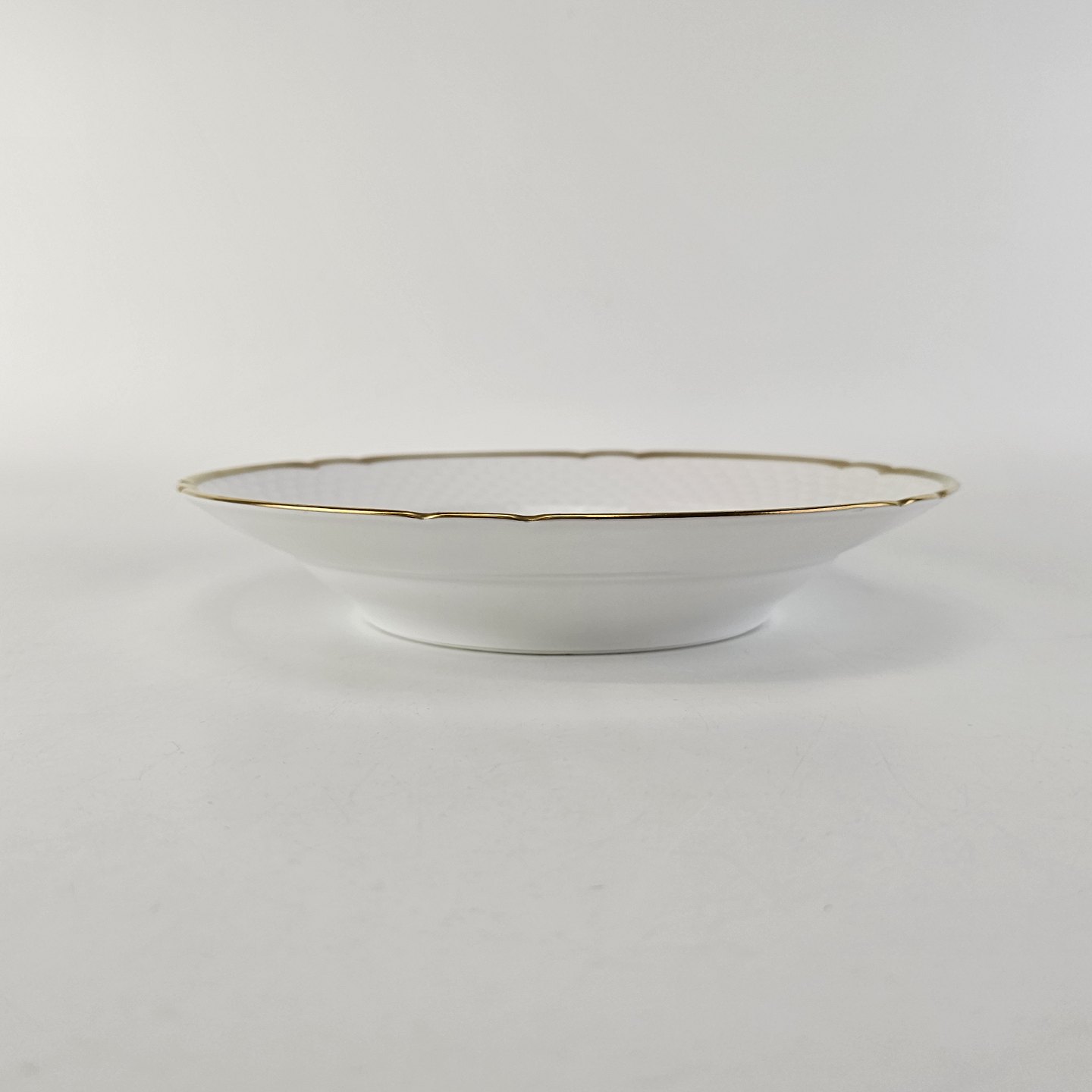 Hostrup er hvidt porcelæn i skælform med guldkant