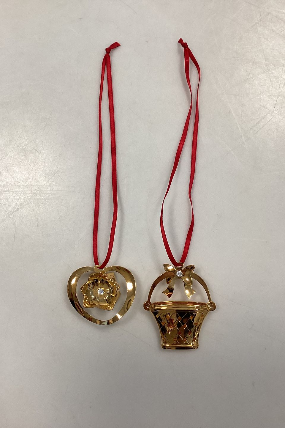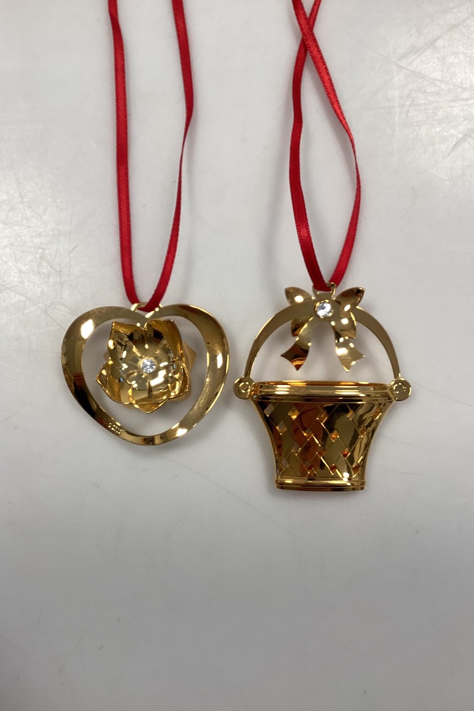 Georg Jensen Christmas Classics Holiday Ornaments 2008 - Christmas Rose and Flower BasketDesigned by Regitze Overgaard. Gold-plated brass. Without box.