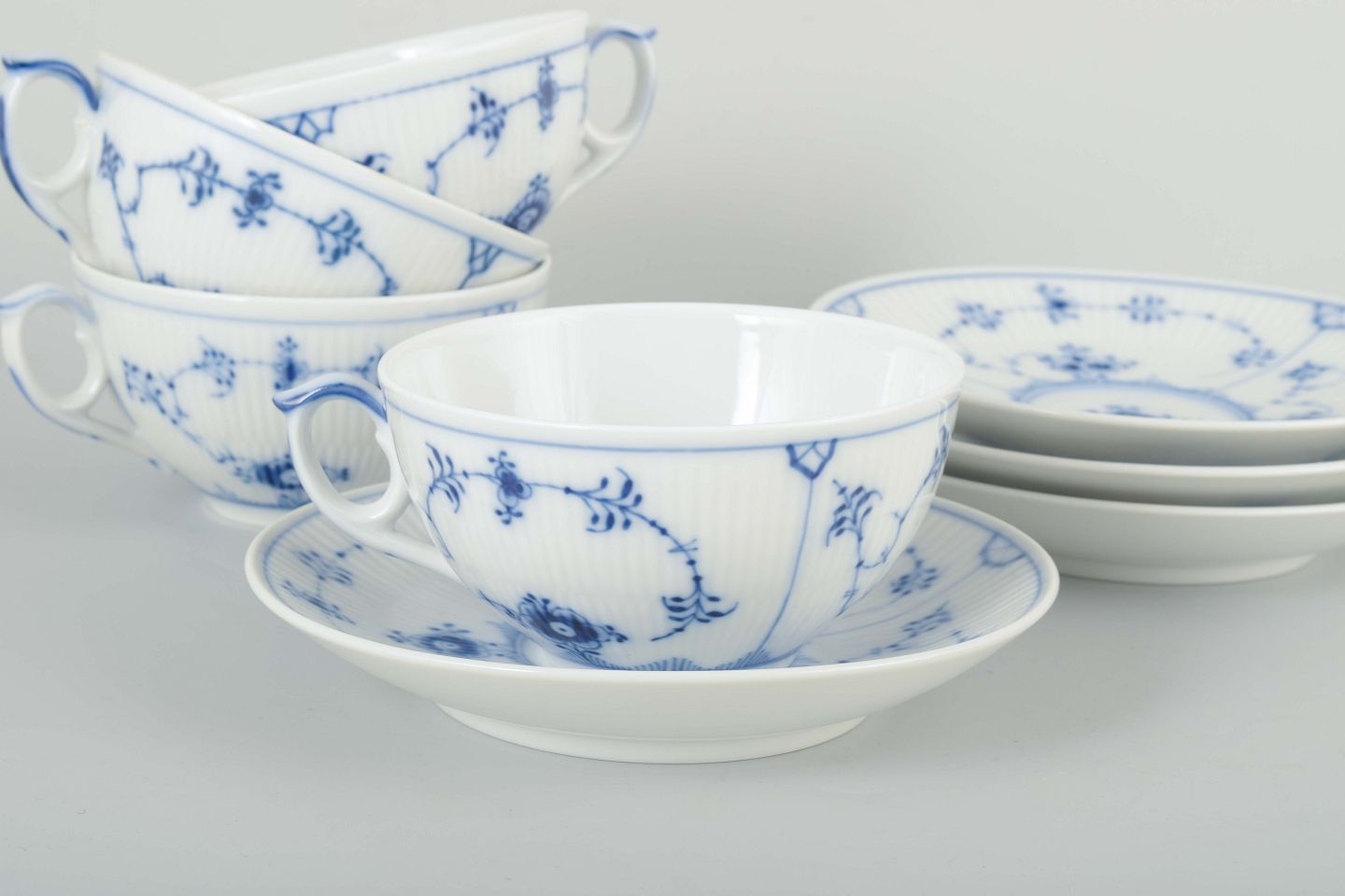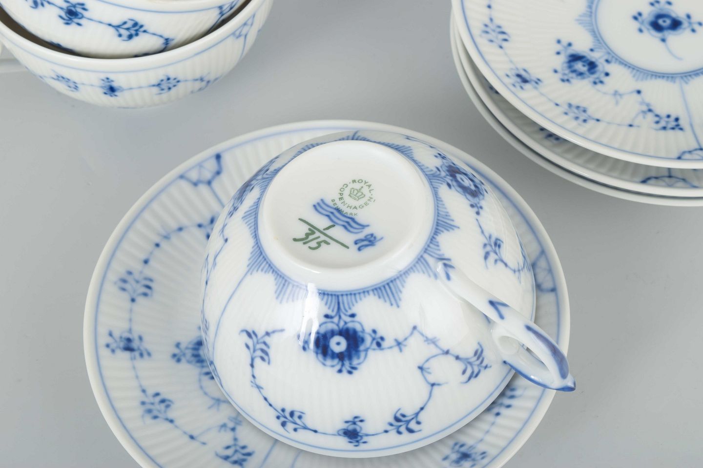 Royal CopenhagenBlue Fluted Plain, tea cups with saucers, late 20th century.