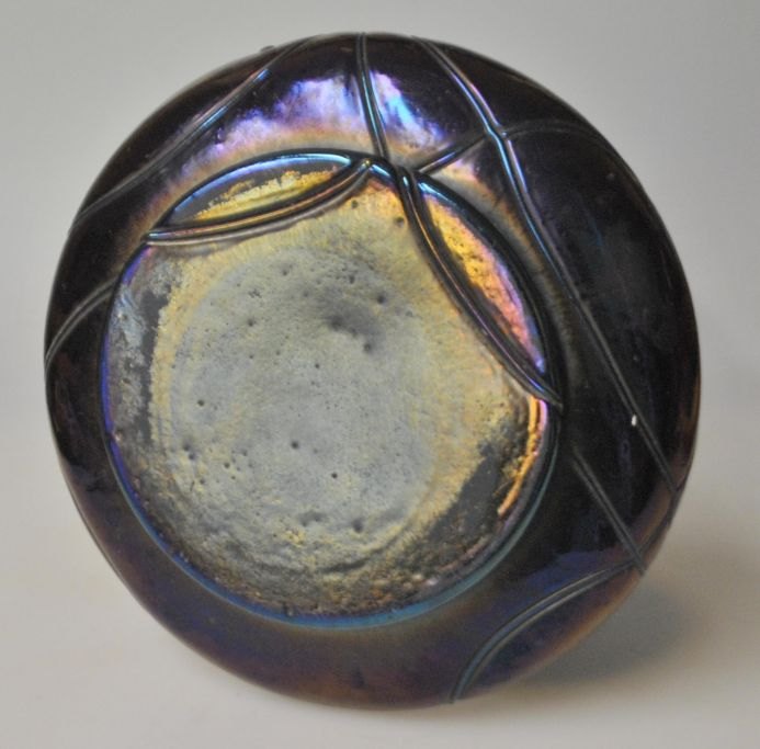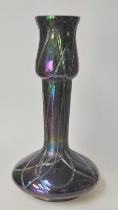 Loetz vase, Art Nouveau, circa 1900. Made of iridescent glass with a series of glass step decorations. H.: 29 cm.Perfect condition!