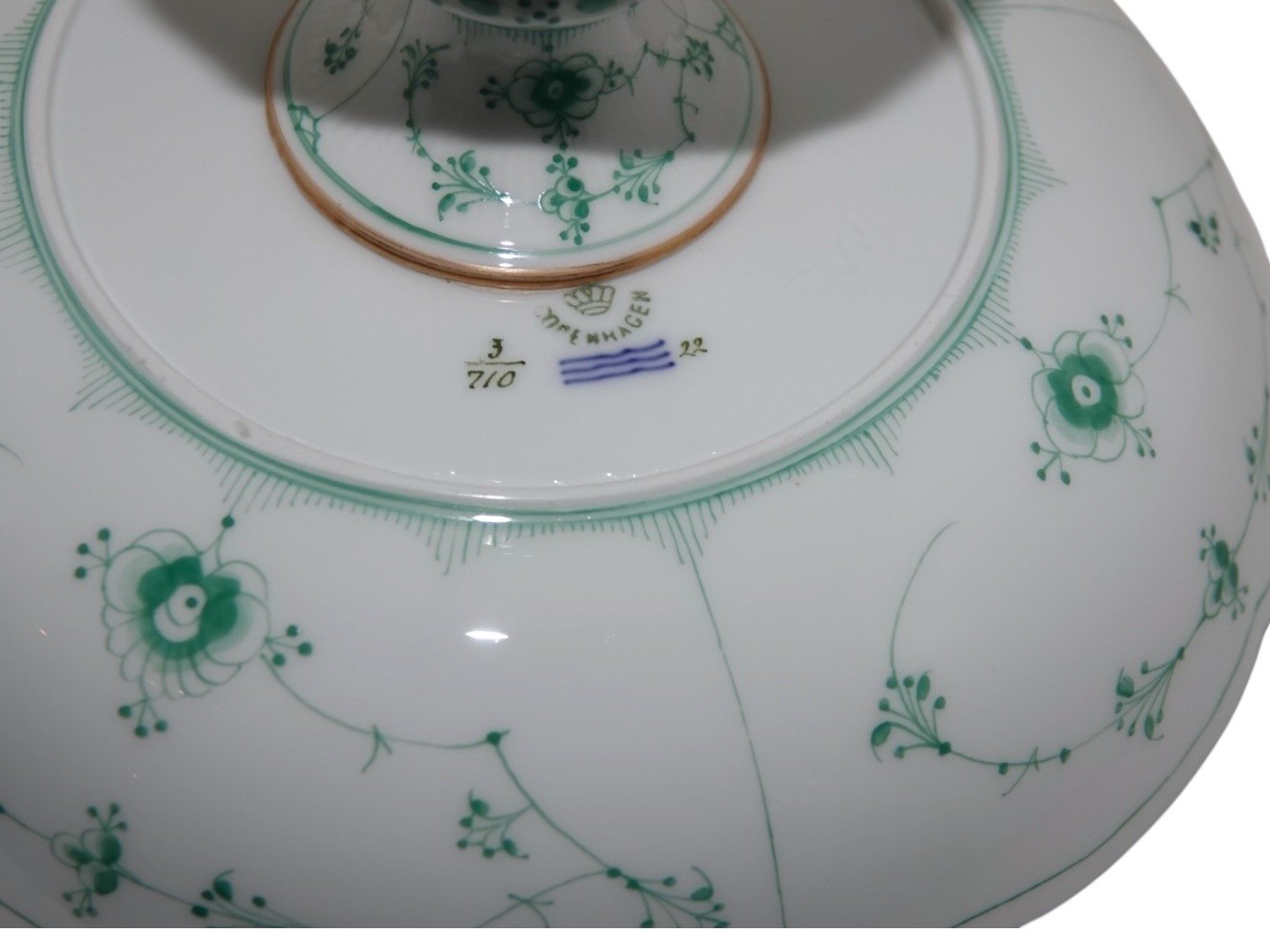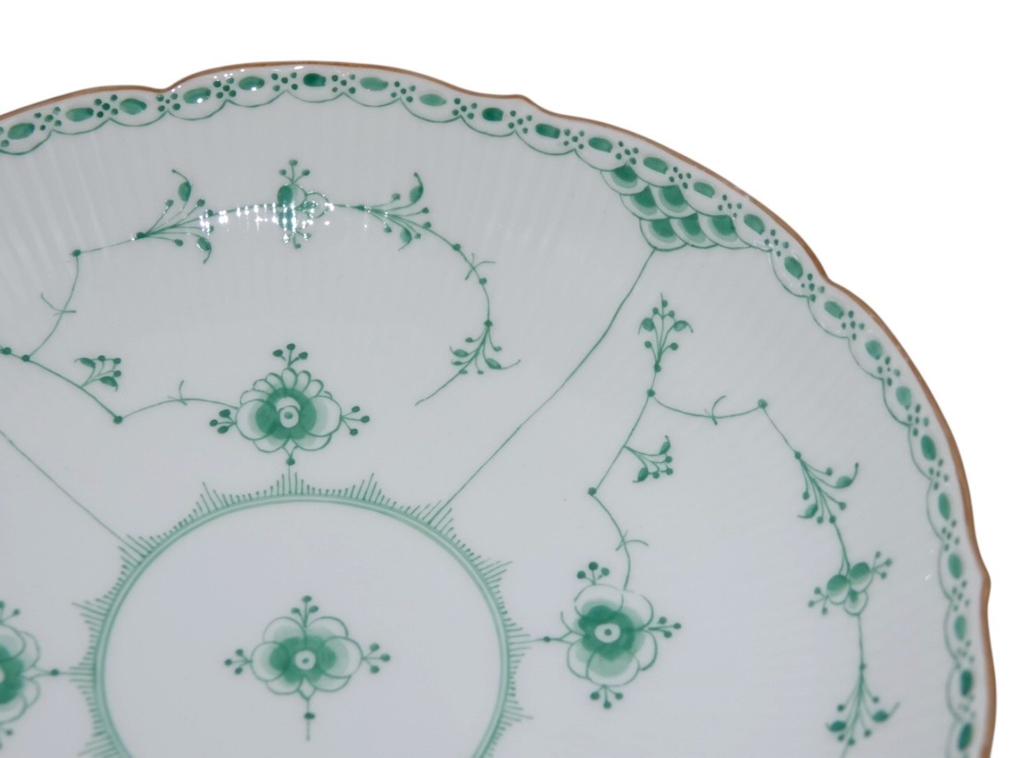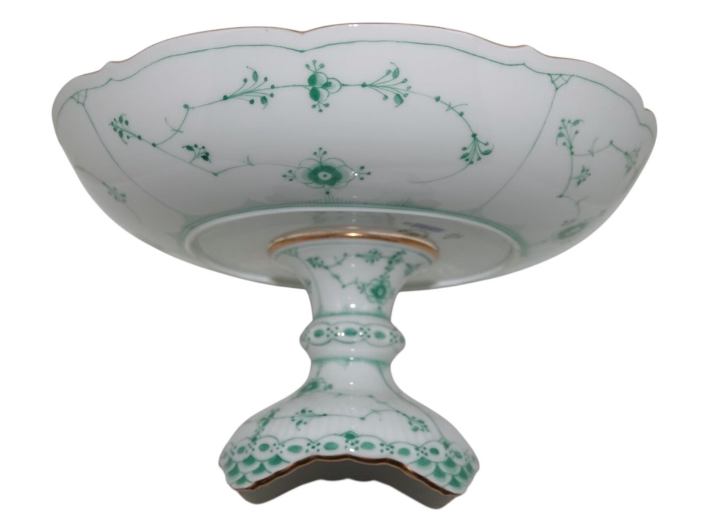 Royal Copenhagen Green Fluted Half Lace with gold trim, cake stand.It is super rare to find the early Green Fluted pieces.