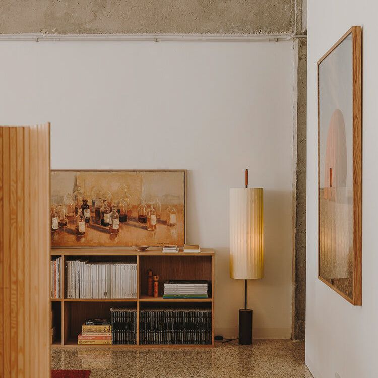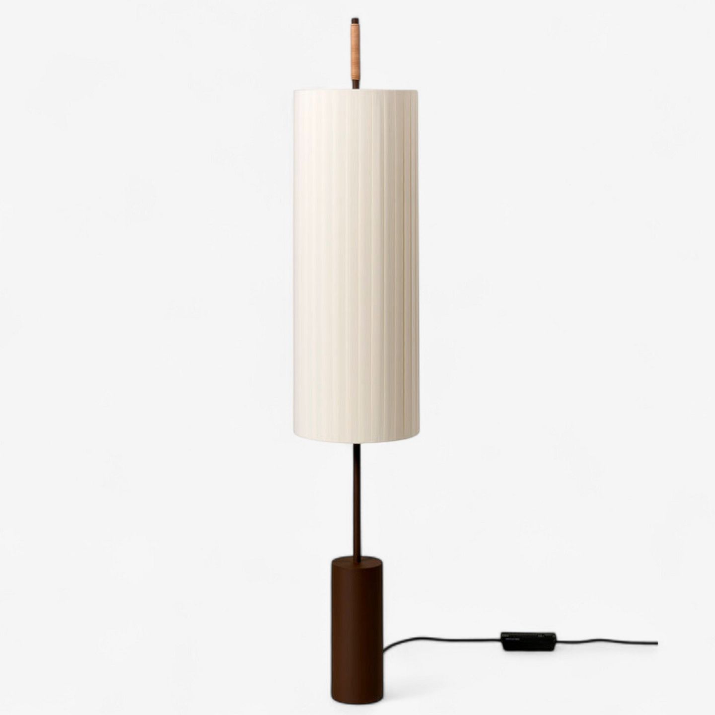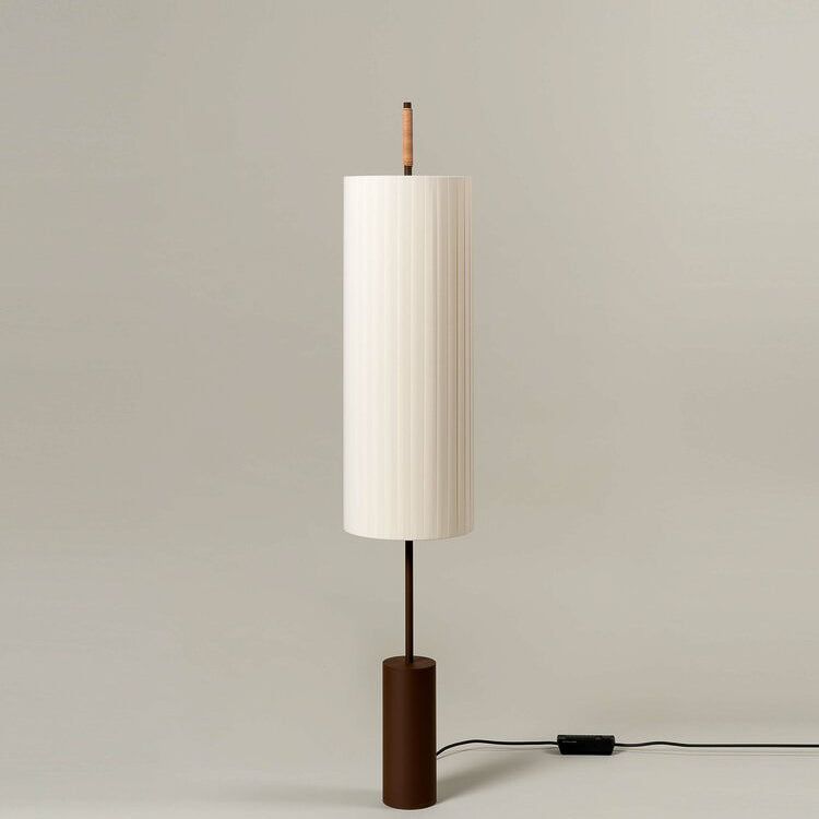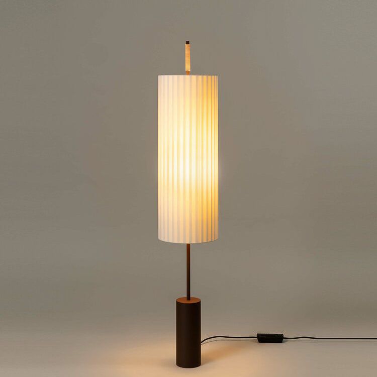 Dorica floor lamp with natural bookbinding ribbon and metal structure. Dimmable. Designed in 1994.