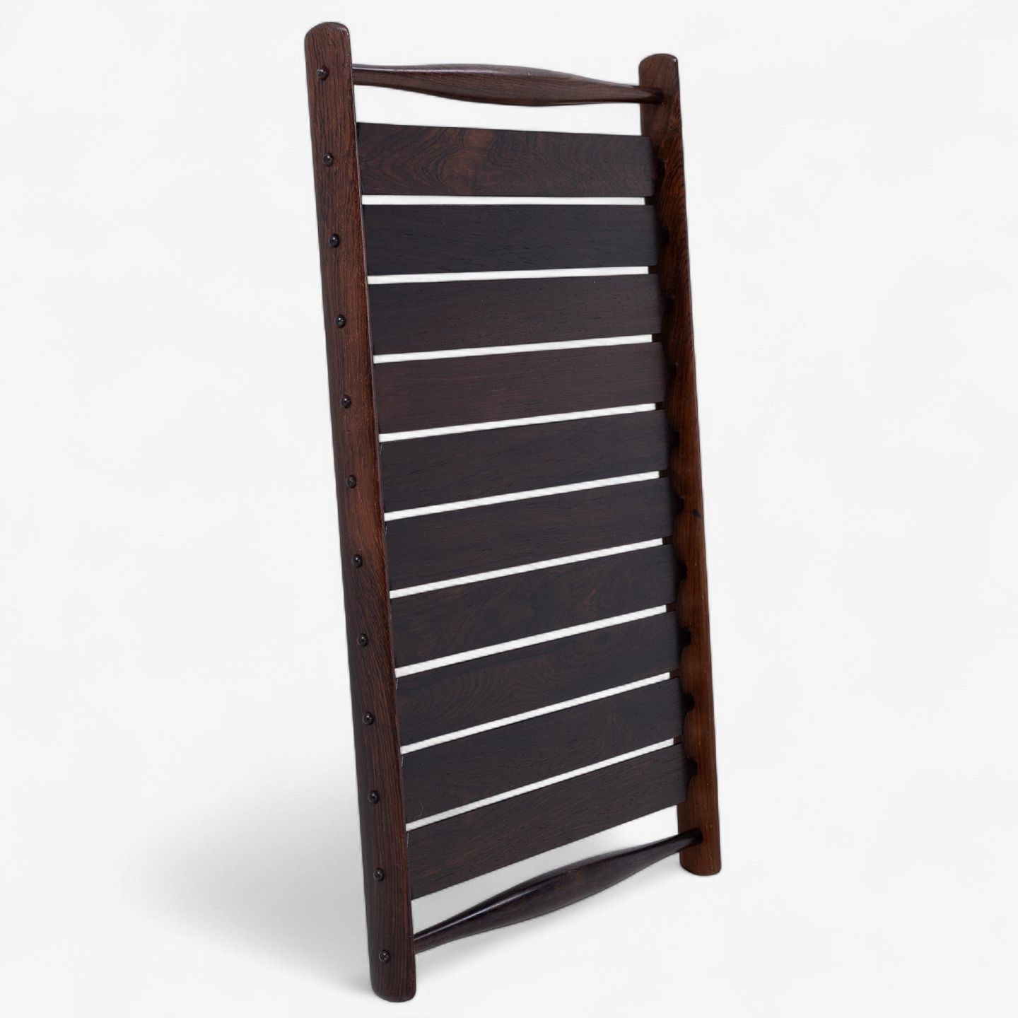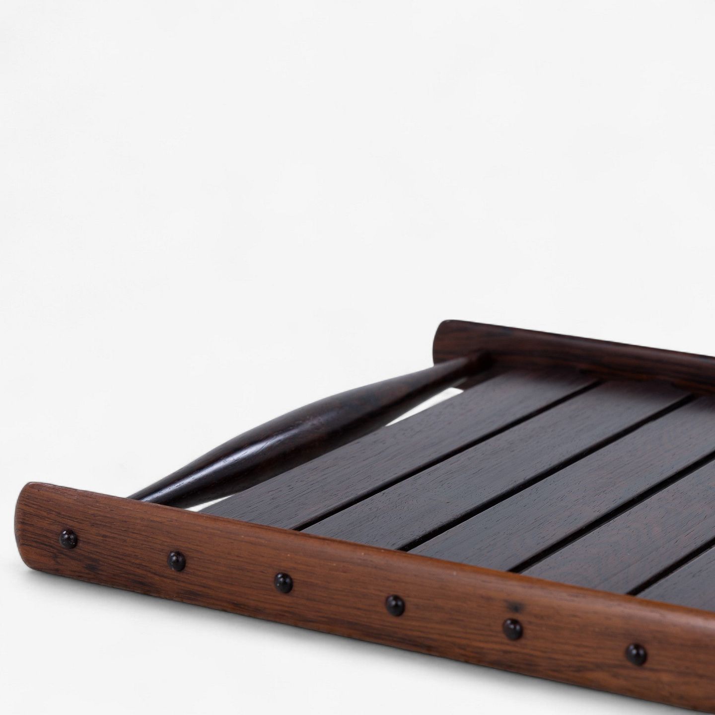 'Xylophone' serving tray in Rio rosewood with slats and handles.