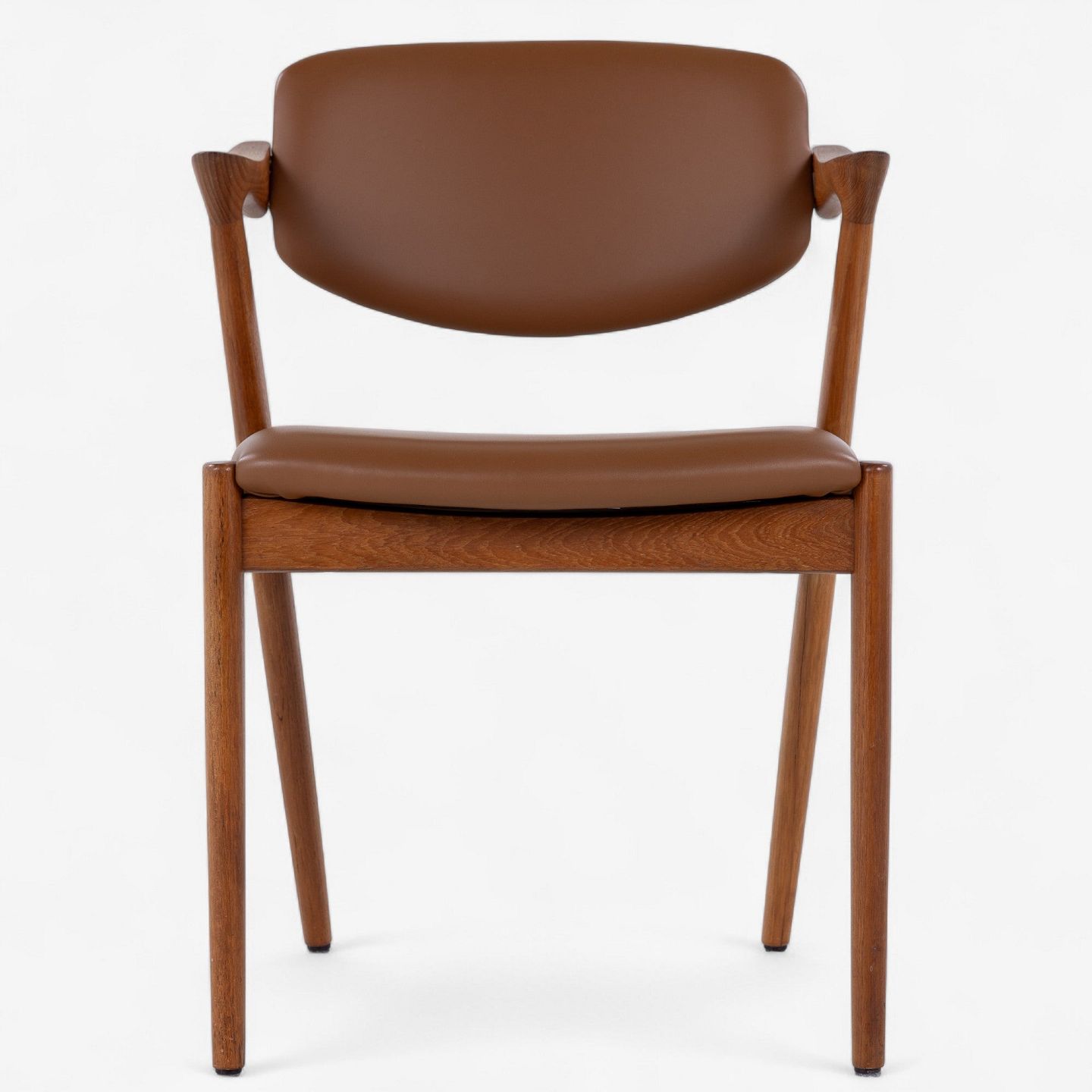 NO 42 - Set of 6 'Z-chairs' armchairs in teak with seat and back upholstered in newer Savanne semi-aniline leather (color: Walnut). Designed in the 1950s.