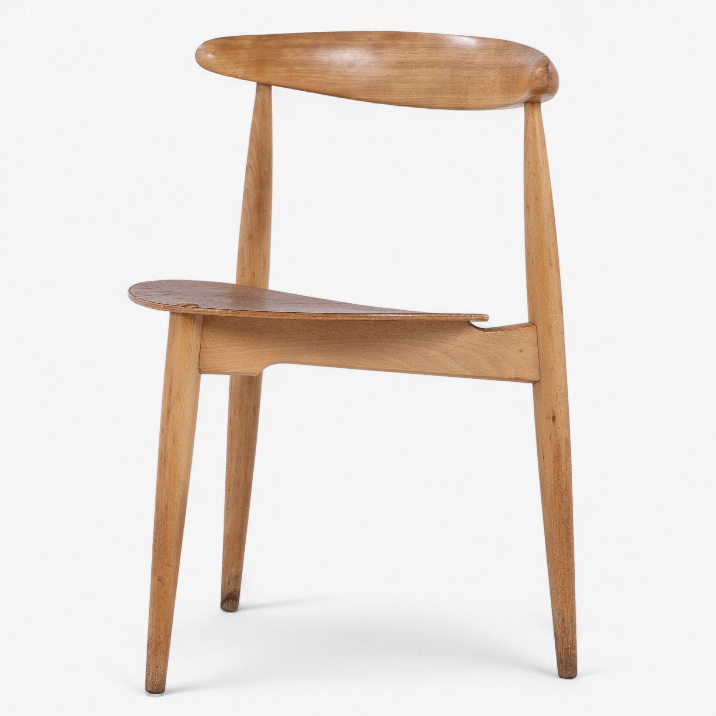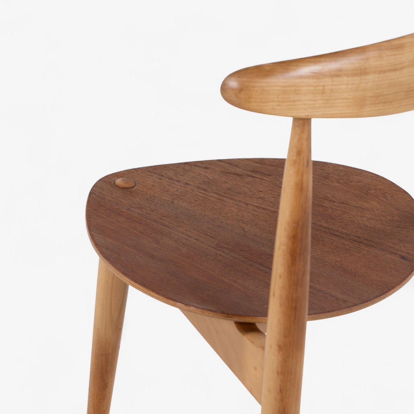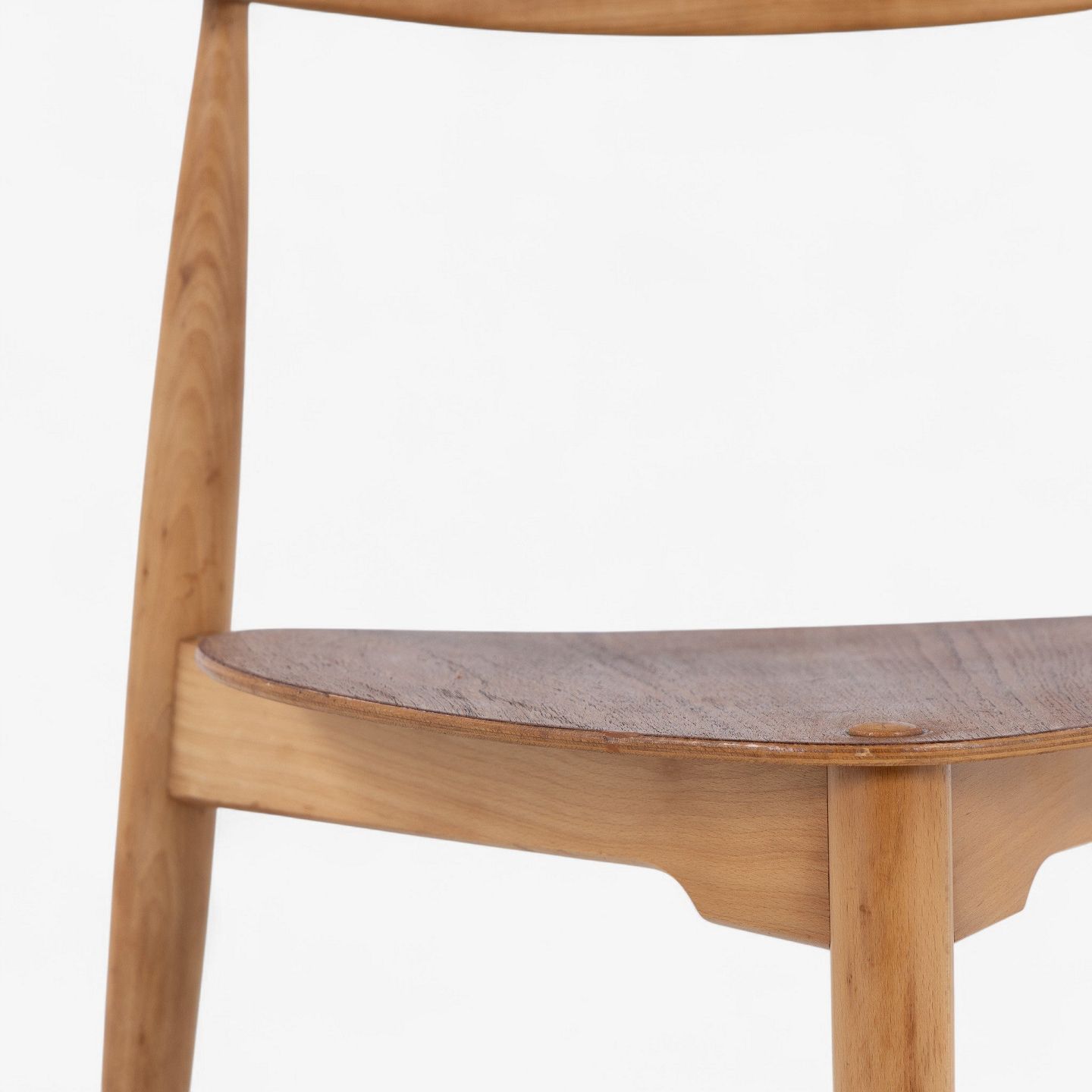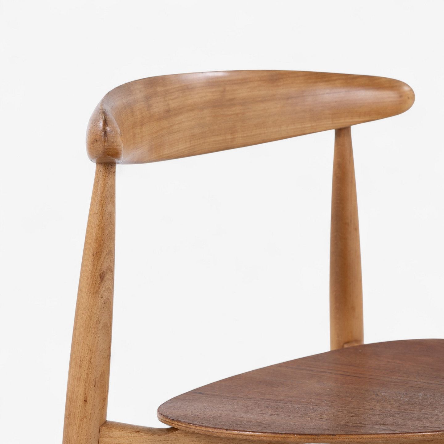 FH 4130 - Set of 4 'Heart Chairs' in solid patinated beech with teak seats. Designed 1952.