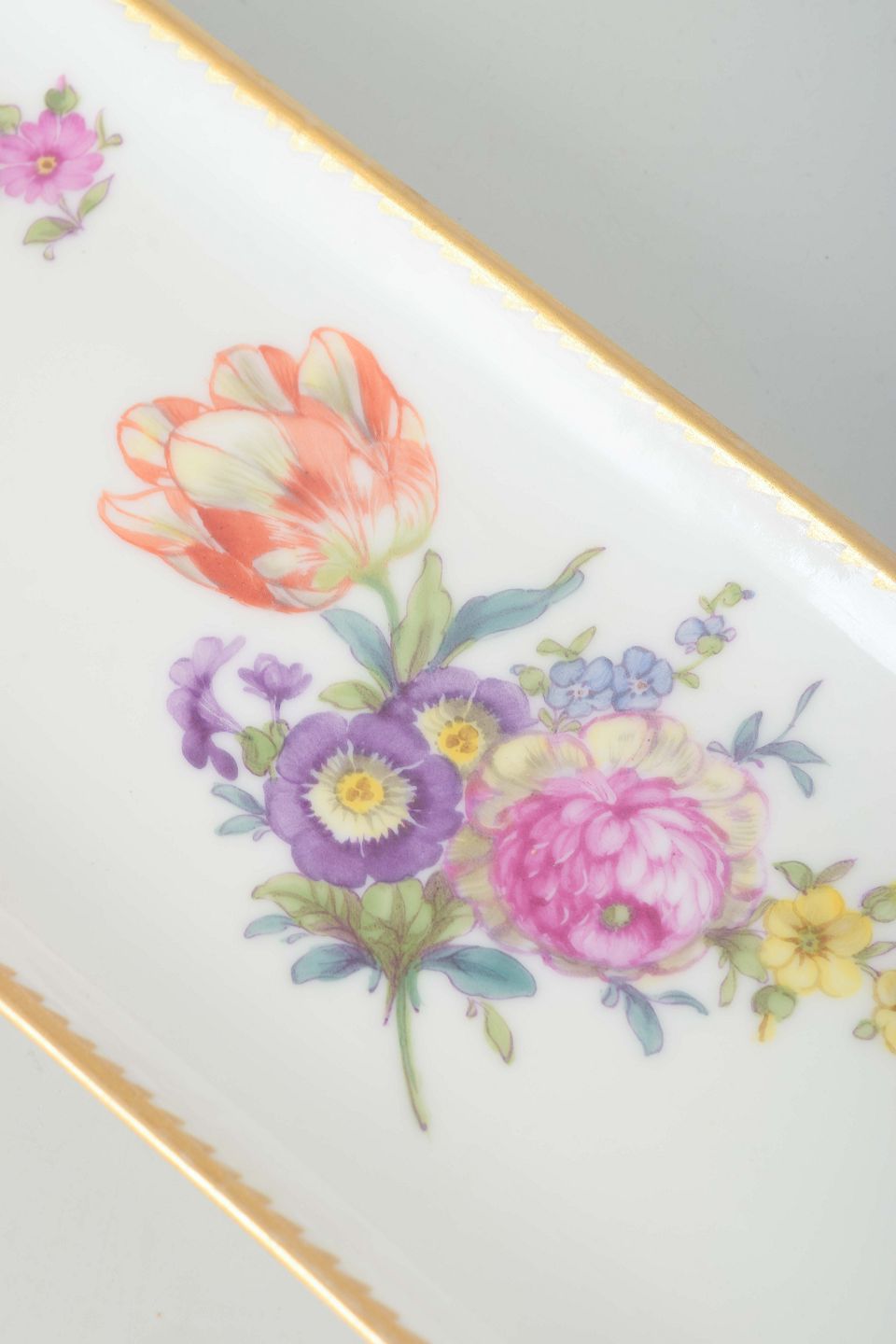 Royal Copenhagen was founded in 1775 under the patronage of Queen Juliane Marie and soon became renowned for its hand-painted decorations. The “Saxon Flower” pattern, introduced in the late 18th century and inspired by botanical engravings, was applied not only to tableware but also to rarer decorative and desk accessories, making pieces such as this pen tray particularly desirable collector’s items today.