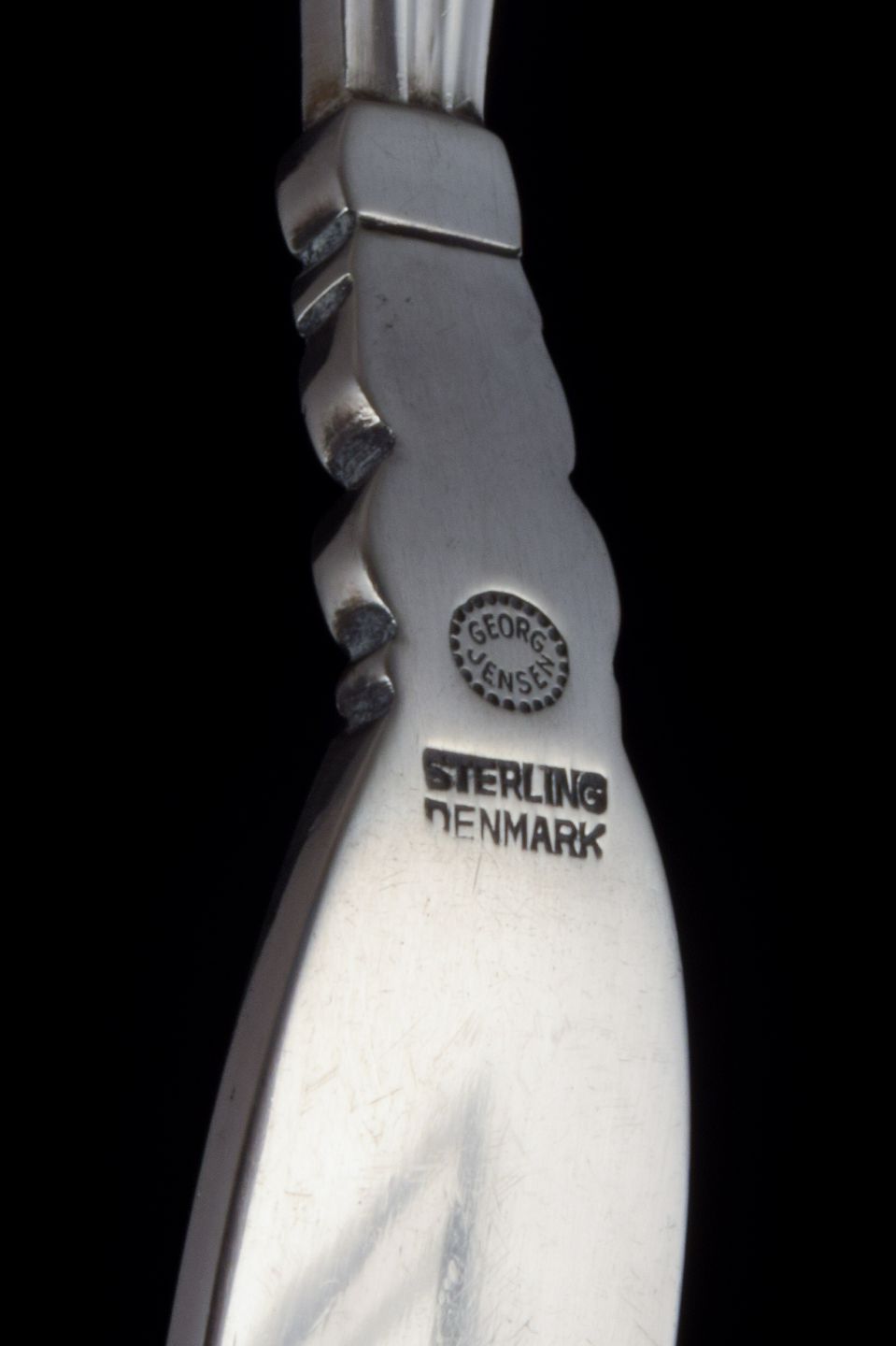 “Acorn” (Danish “Konge”) is one of Georg Jensen’s most iconic flatware patterns, created by Johan Rohde in 1915. The design combines classical forms and ornamentation with the modernist spirit of the time and remains one of the most sought-after silverware patterns among collectors and users worldwide.