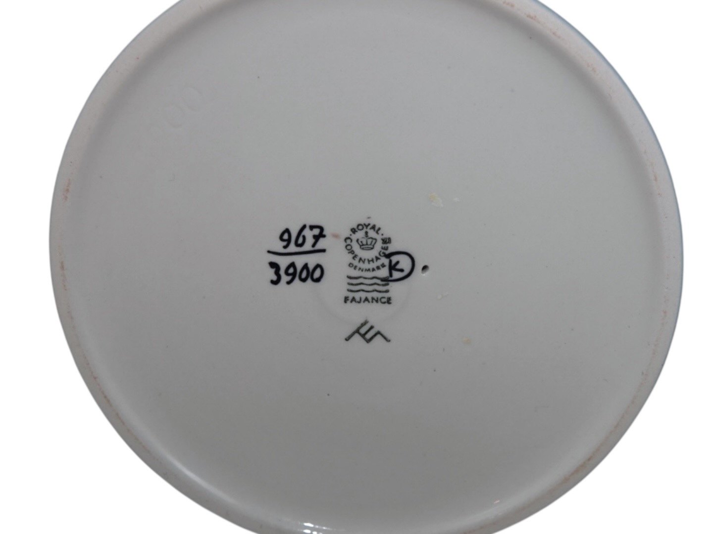 Royal Copenhagen Faience Celeste, candlelight holder.Designed (and signed) by artist Ellen Malmer.
