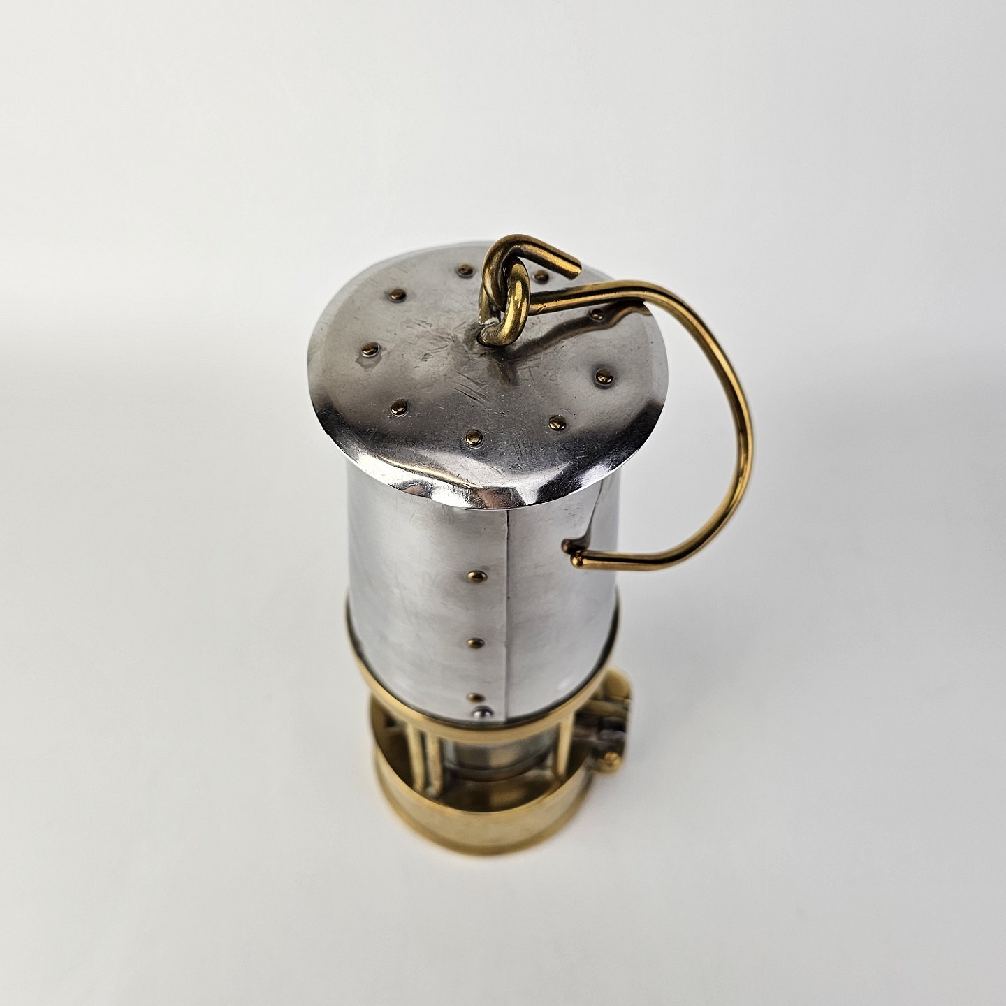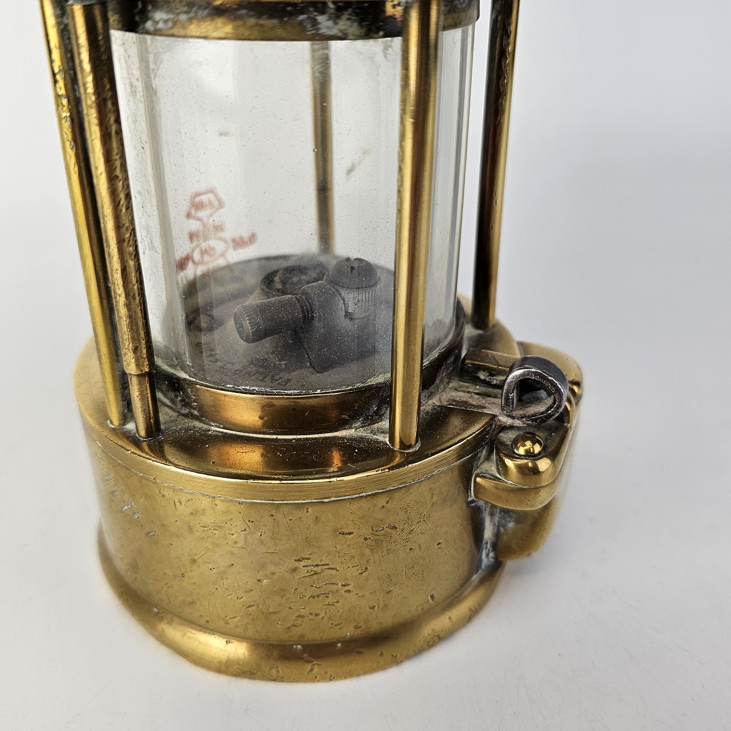 Minelampe i messing og glas til olieStemplet The Protector Lamp & Lighting Co. Ltd.