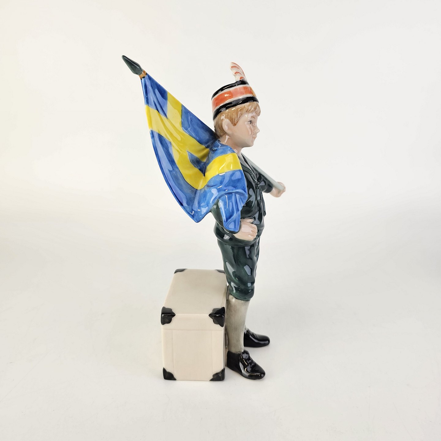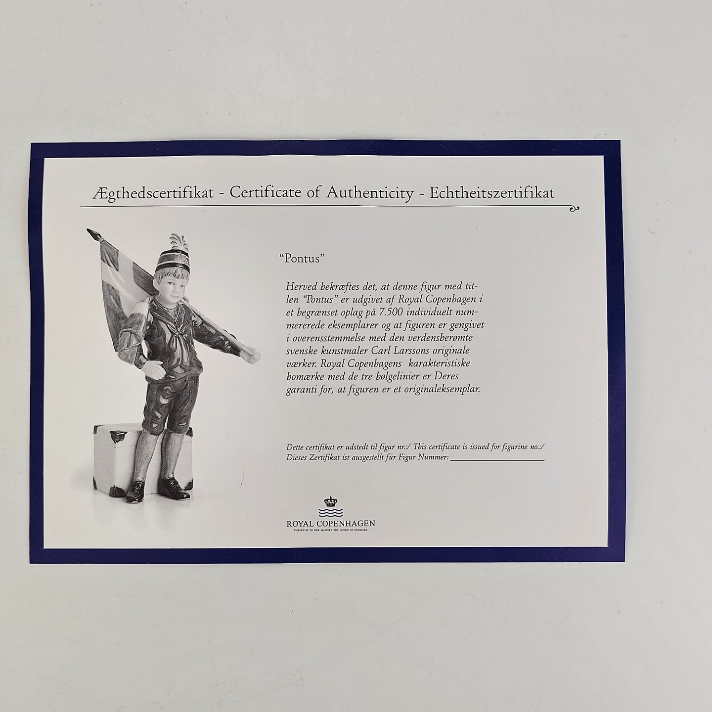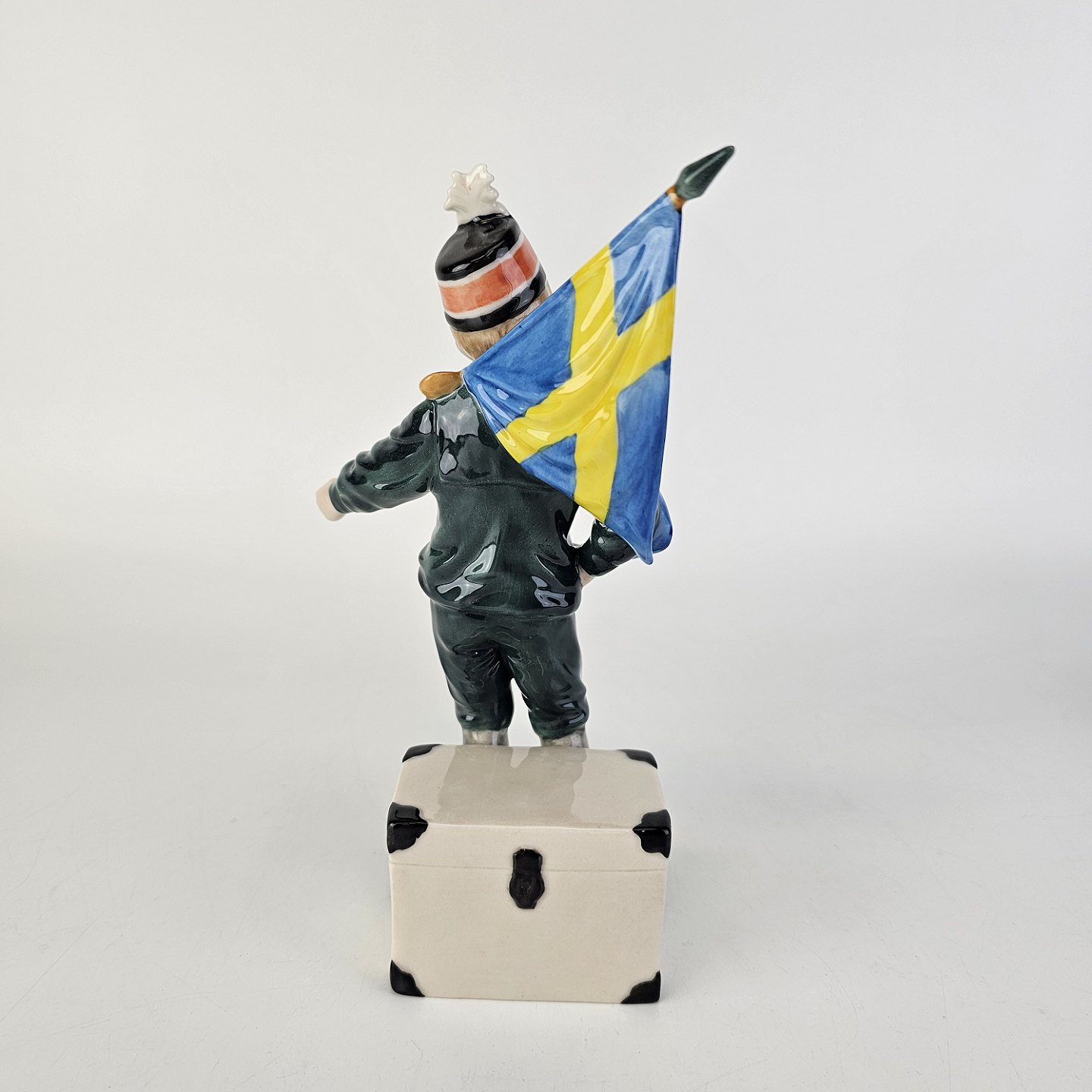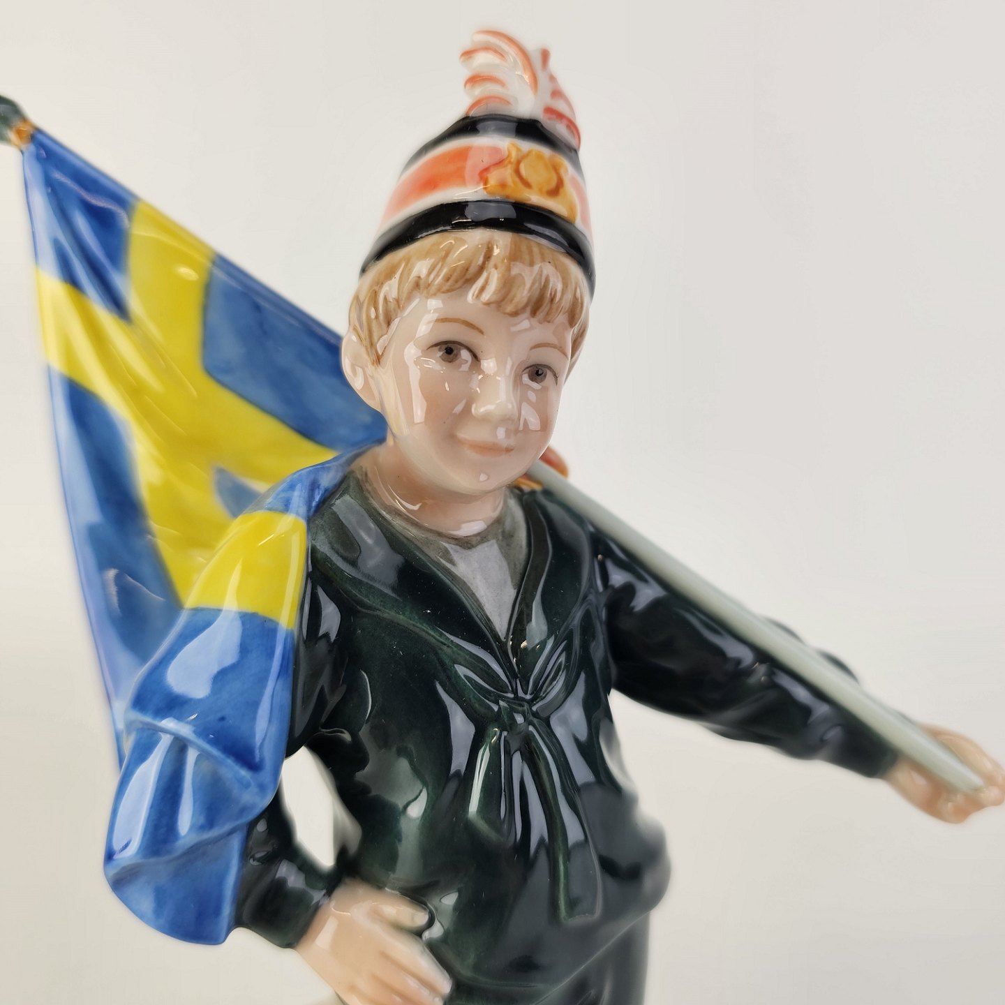 Pontus figur af porcelæn med motiv af en dreng med et svensk flagLimited edition, nummeret 178/7500