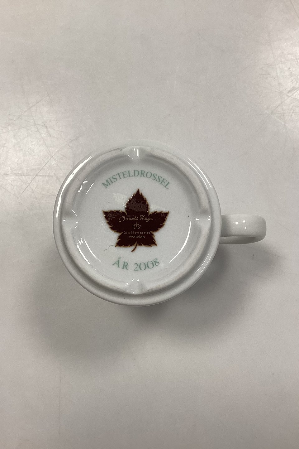 Mads Stage Annuel Mug - Mistle Thrush 2008. Manufacturer: Seltmann Weiden.Measures 7.5 cm x 8.3 cm / 2.95 in. x 3.26 in.