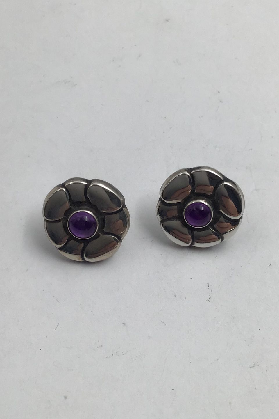 Georg Jensen Sterling Silver Earrings (Studs) No. 36 (Amethyst)Measures Diam 1.6 cm (0.63 inch) Combined Weight 8.36 gr (0.29 oz)