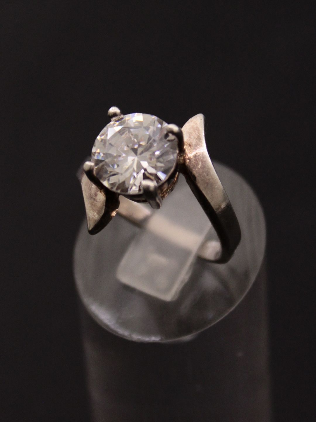 Sterling silver ring with large clear stone size 55 item no. 622905 Dealer