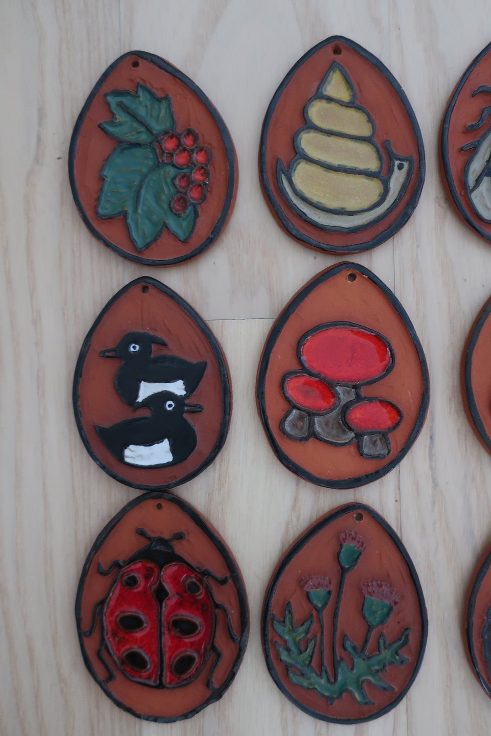 Drop-pottery made by Hildegon, the well known potter from the island Als in Southern Jutland. The drops are made with many different themes - a series."Hildegon" is the name of the pottery from Hilde (living) and Egon