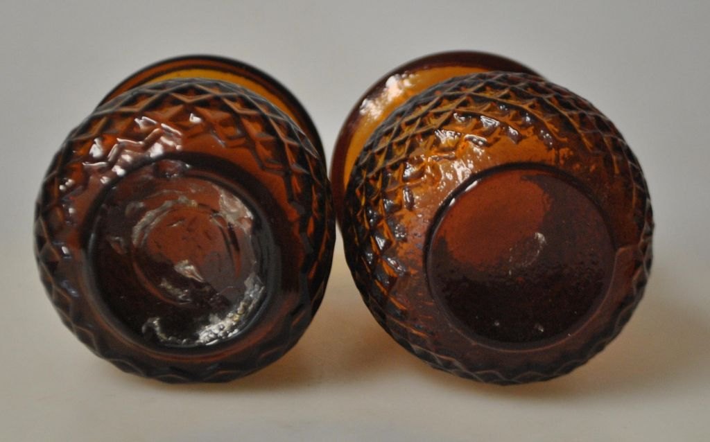 2 Illuminations glass, amber, 19th century. Denmark. H: 9.5 cm.NB: With small chips on the edge.