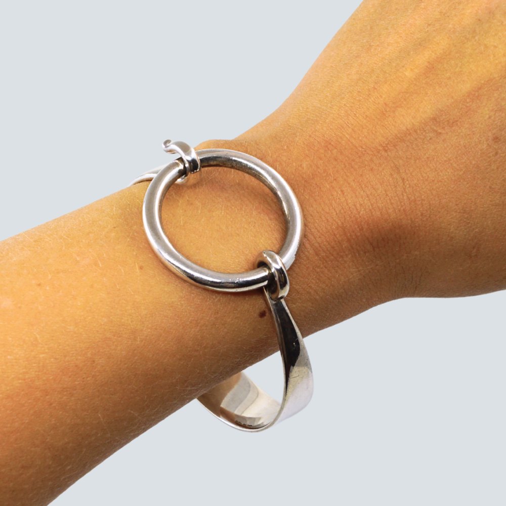 Hans Hansen silver jewellery. Design by Bent GabrielsenHans Hansen; A brangle made of sterling silver. Front shaped like a cirkel, and can be opened.
