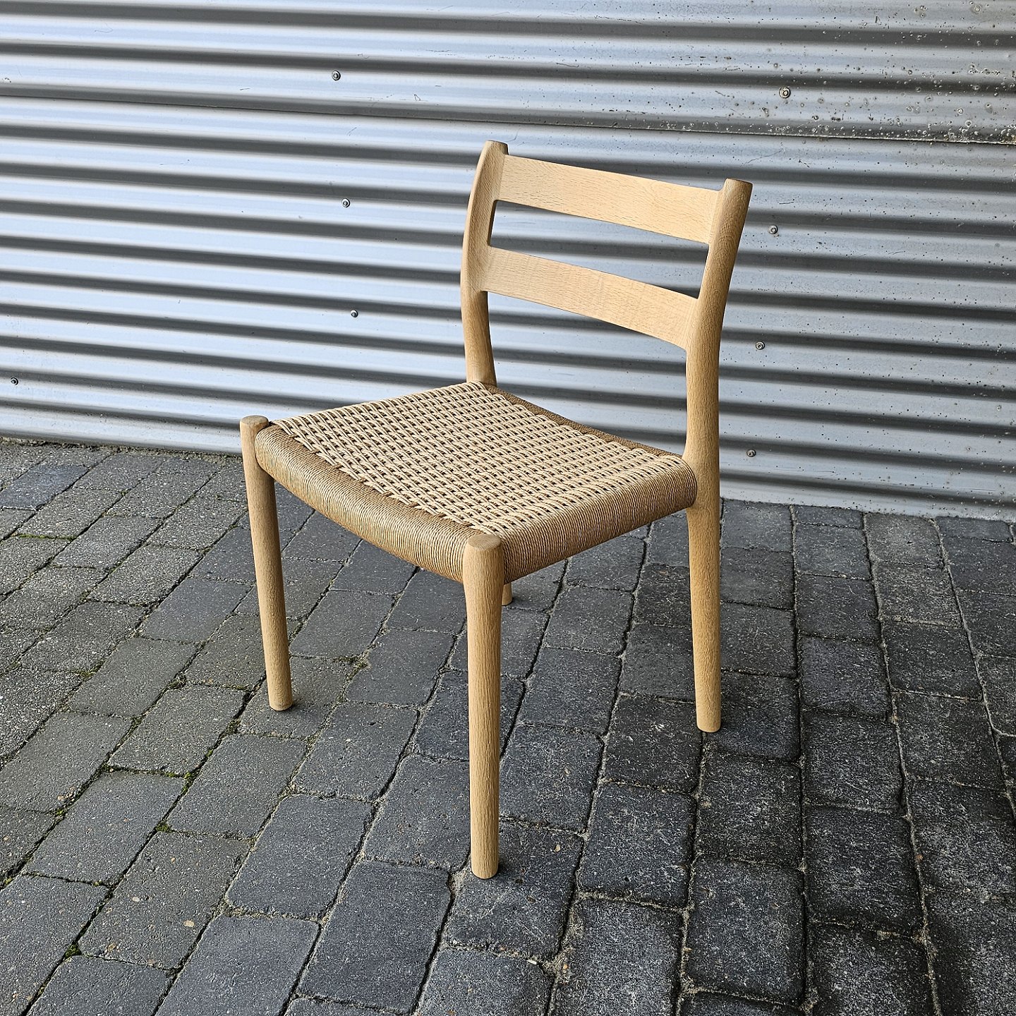 Sæt med seks styk spisebordsstole model 84 i eg med flettede sæderDesign Niels O. Møller