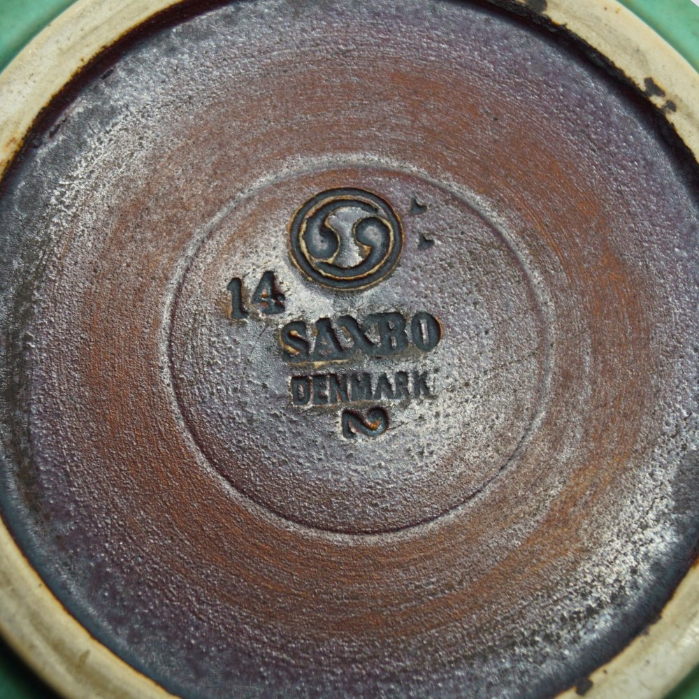 Saxbo stoneware.Eva Stæhr-Nielsen for Saxbo; A vase decorated with a blue and green glaze #14. Stamped