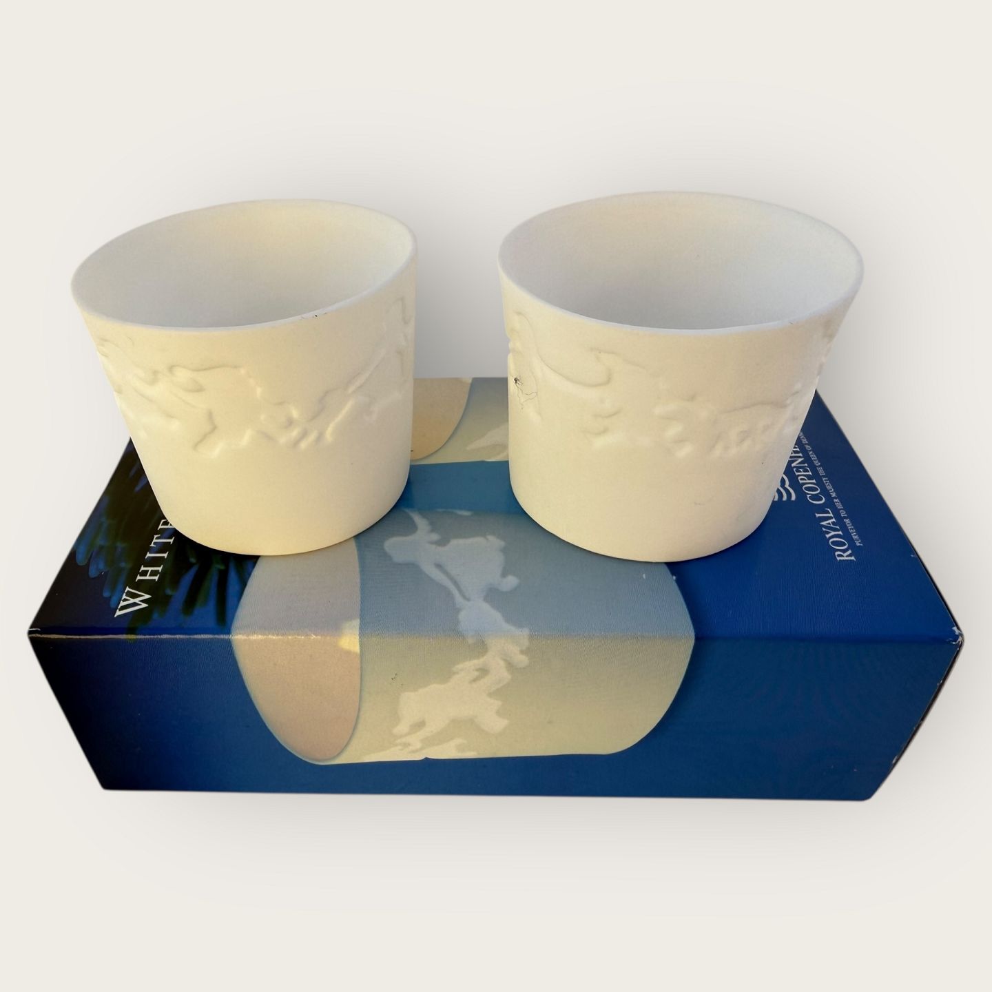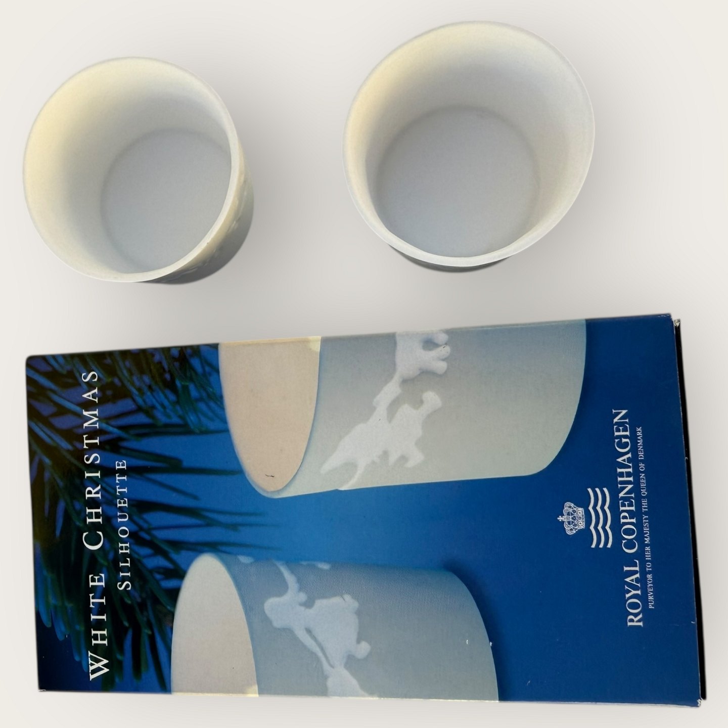Royal Copenhagen, Silhouette, tealight candle holders with dancing elves, 2 pieces in original box.Stock: 1