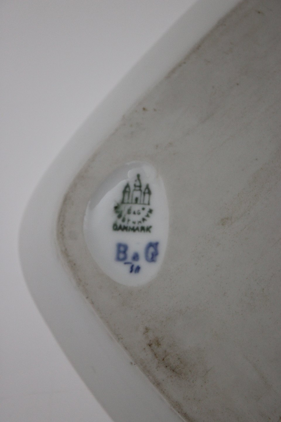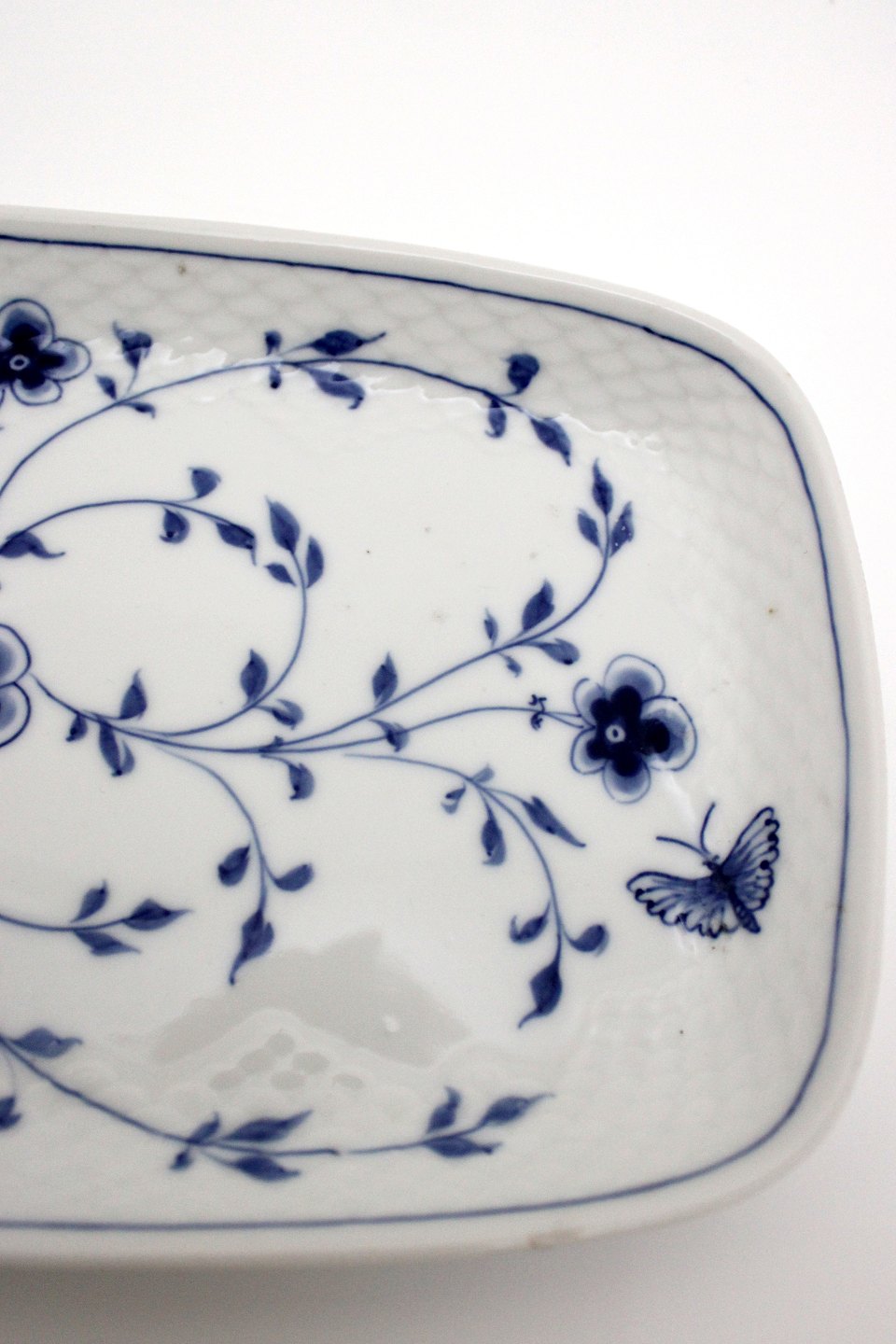 Bing & Grøndahl, Sommerfugl, Bakke til sukker og fløde. Højde 2 cm. Længde 27 cm. Bredde 15,5 cm. Produceret i perioden 1915-1948. I. sortering. Fin stand. Pris: 475 kr. stk. Lager: 1
