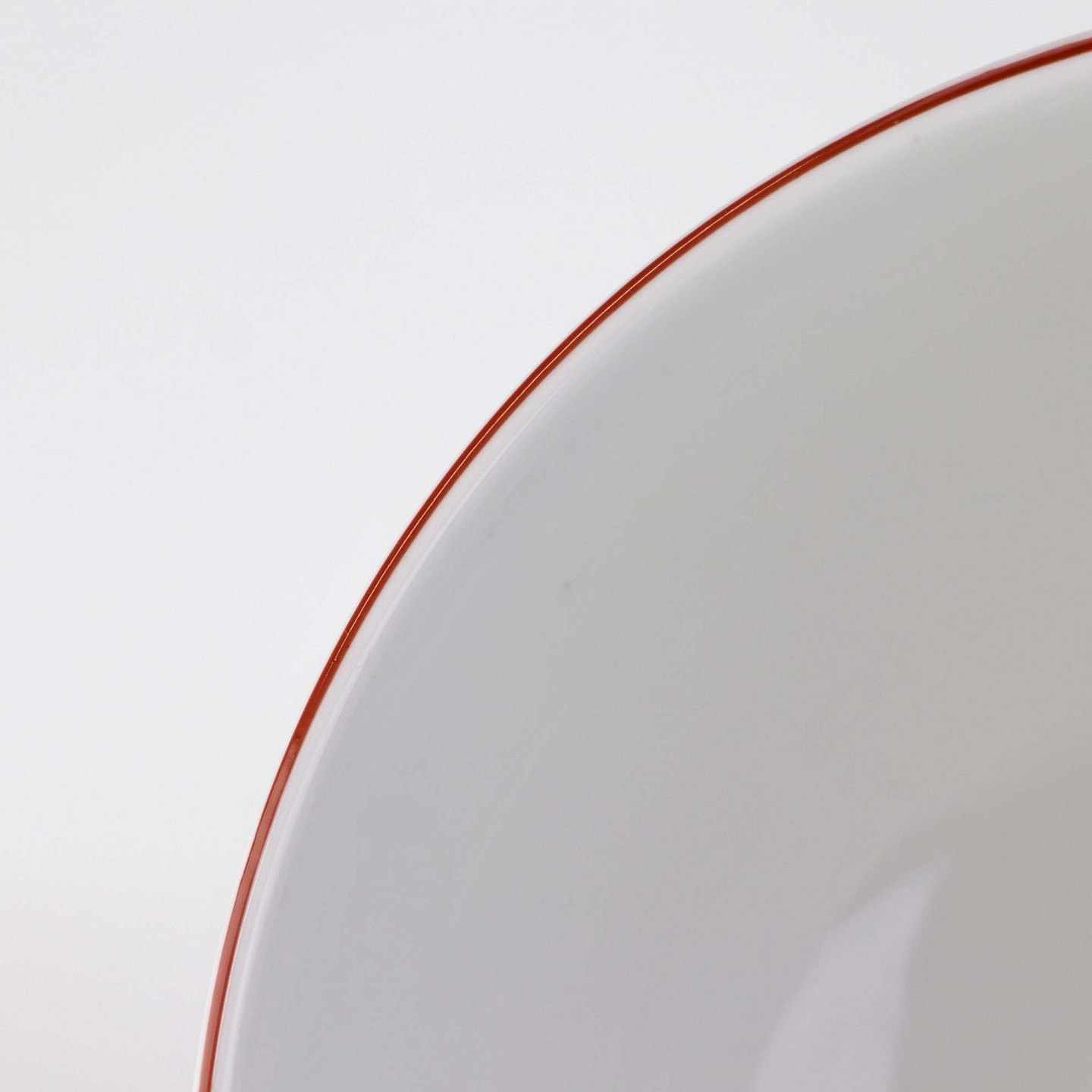 Service i glat hvidt porcelæn med dekoration i tynd rød streg.