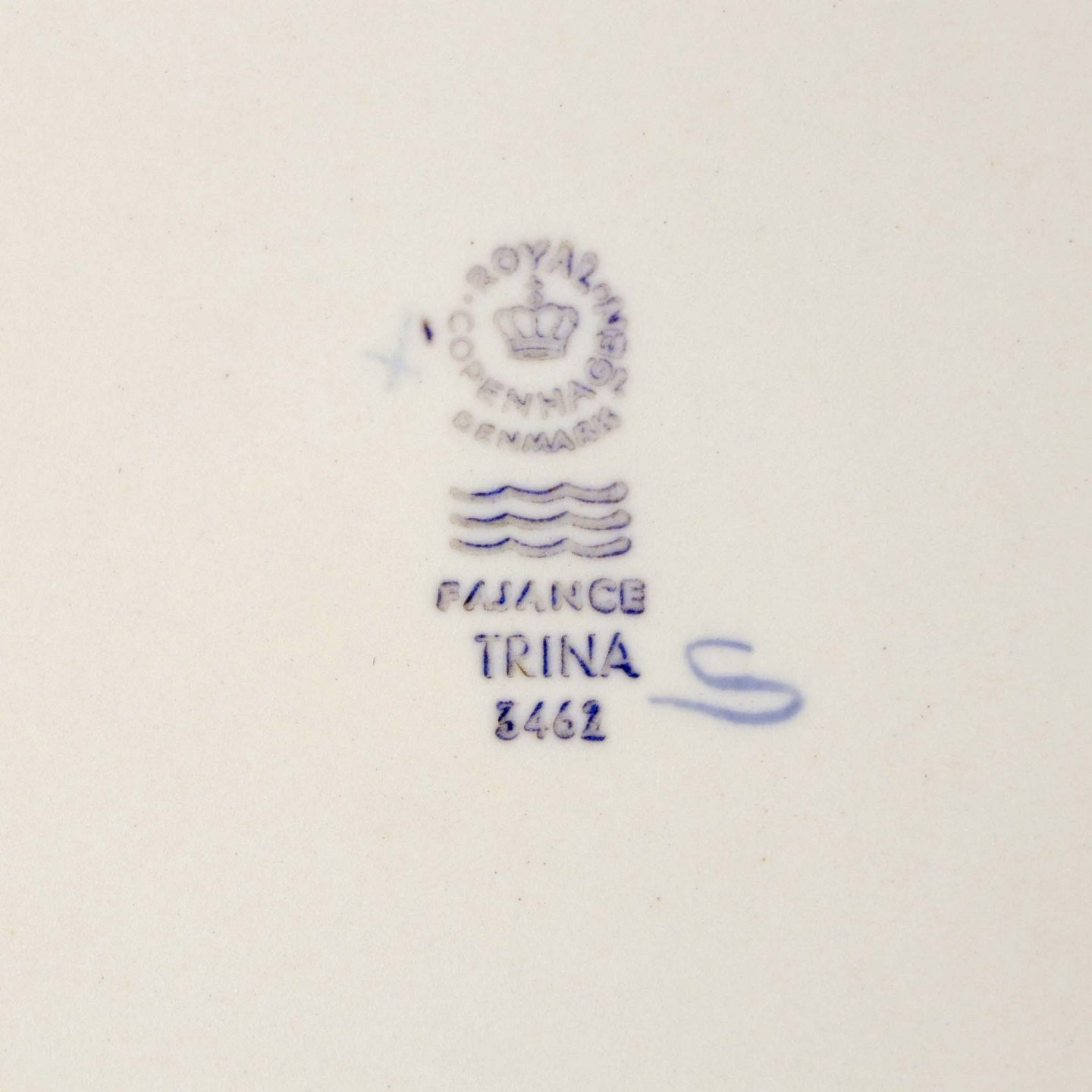 Middagstallerken i kongelig fajance fra stellet Blå Trina. Nr. 3462Producent Royal Copenhagen