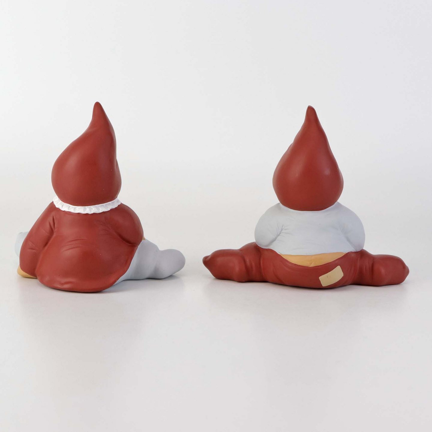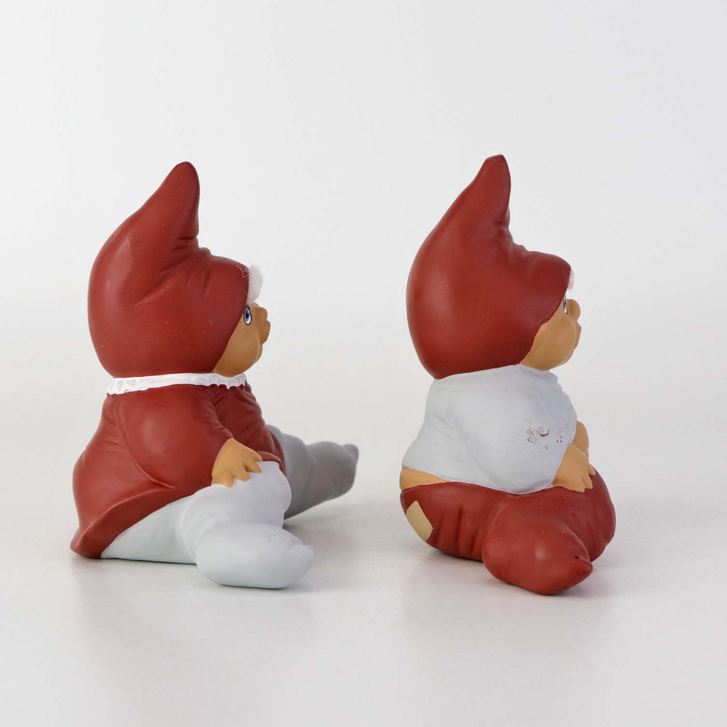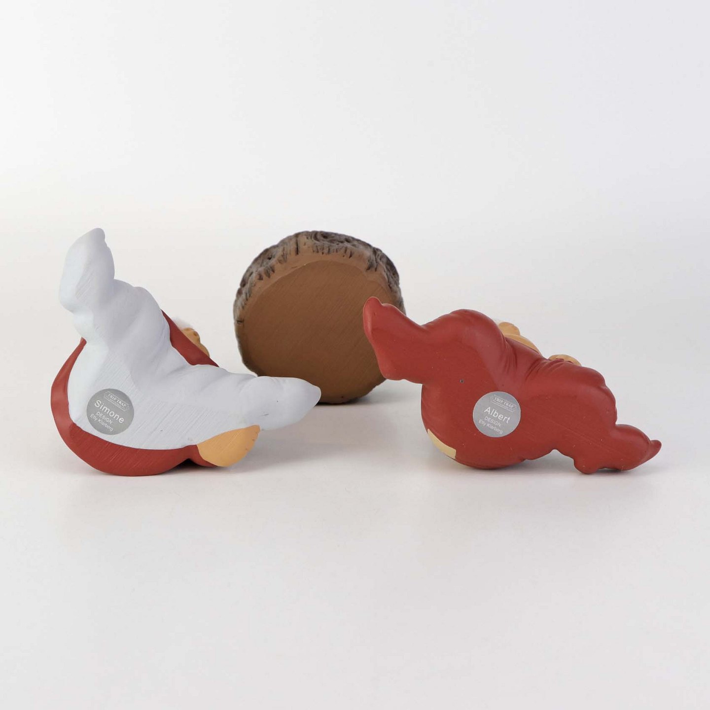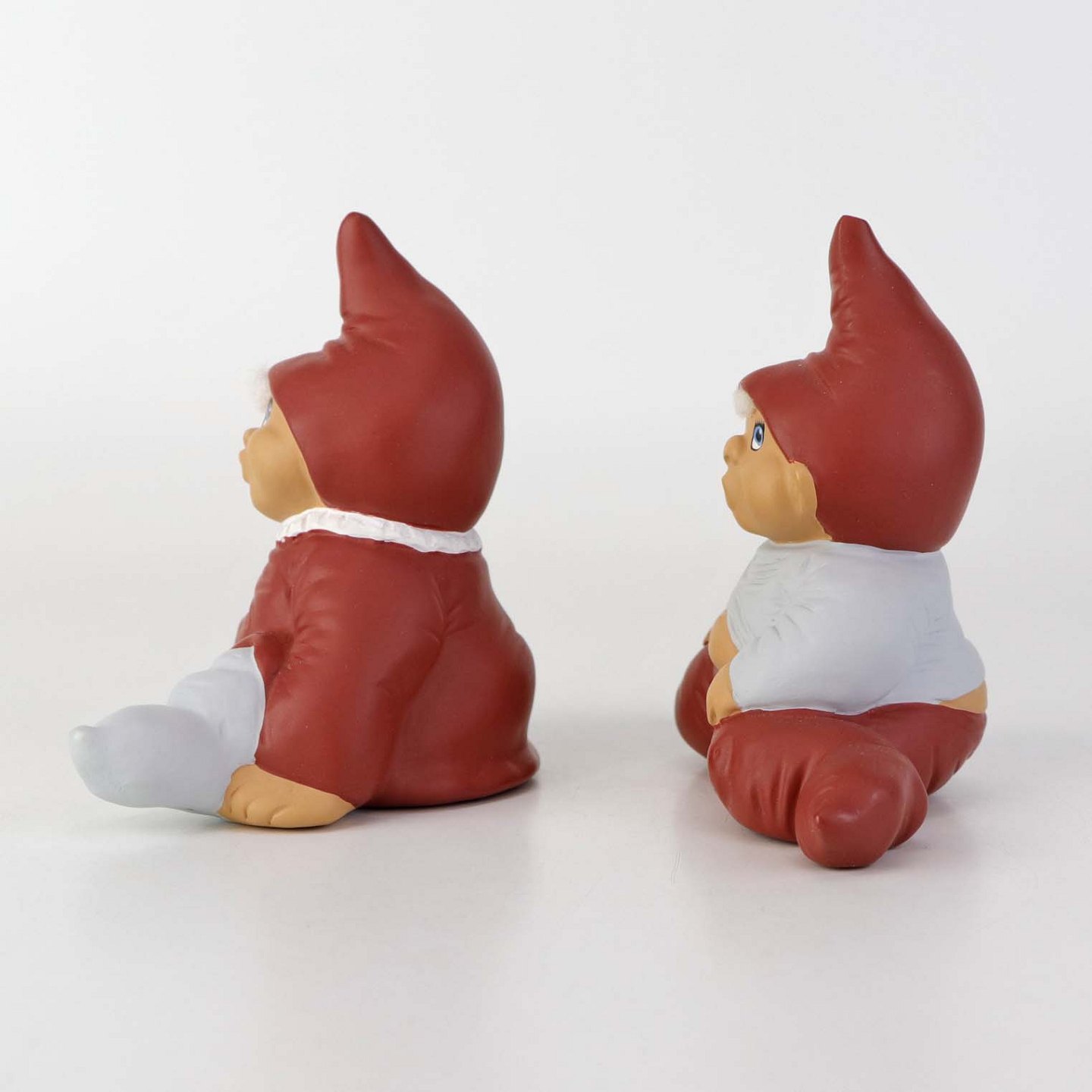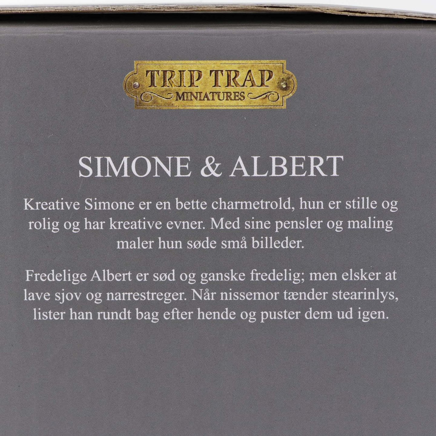 Figursæt med motiv af nisserne Simone og Albert med tilhørende fyrfadsstage fra serien Klarborg jul år 2021. Figurene kommer med original boks.Design Etly Klarborg